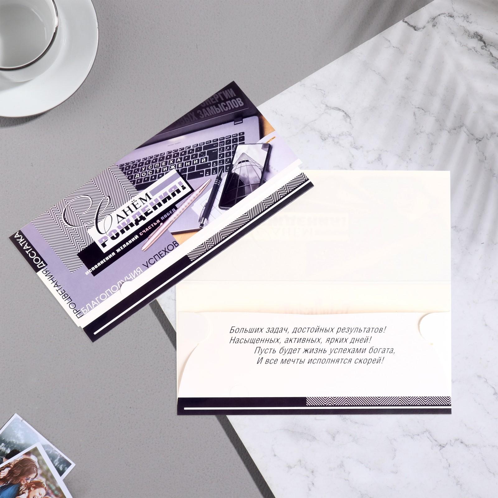 Конверт для денег "С Днем Рождения!" ноутбук, ручки, телефон