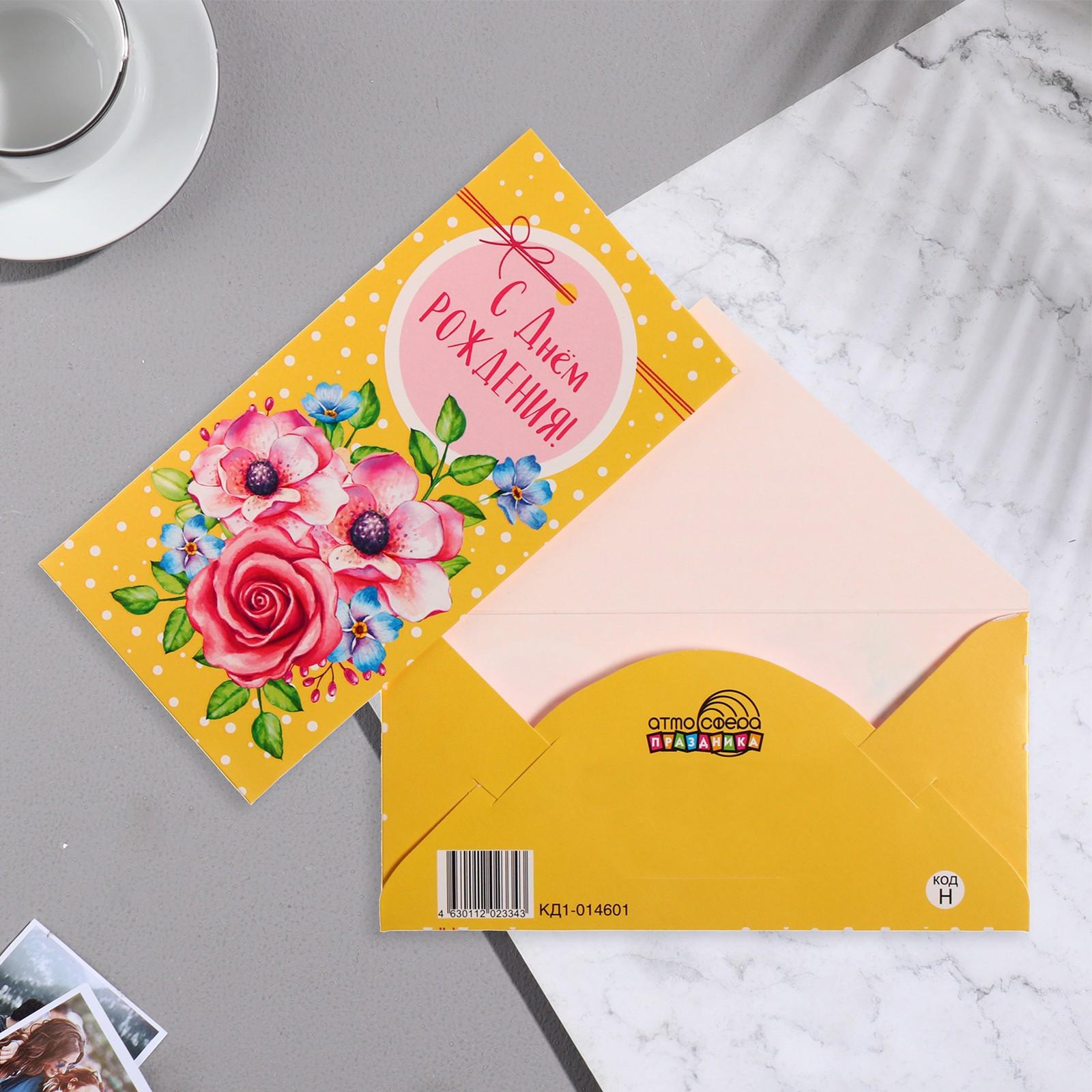 Конверт для денег "С Днем Рождения!" цветы