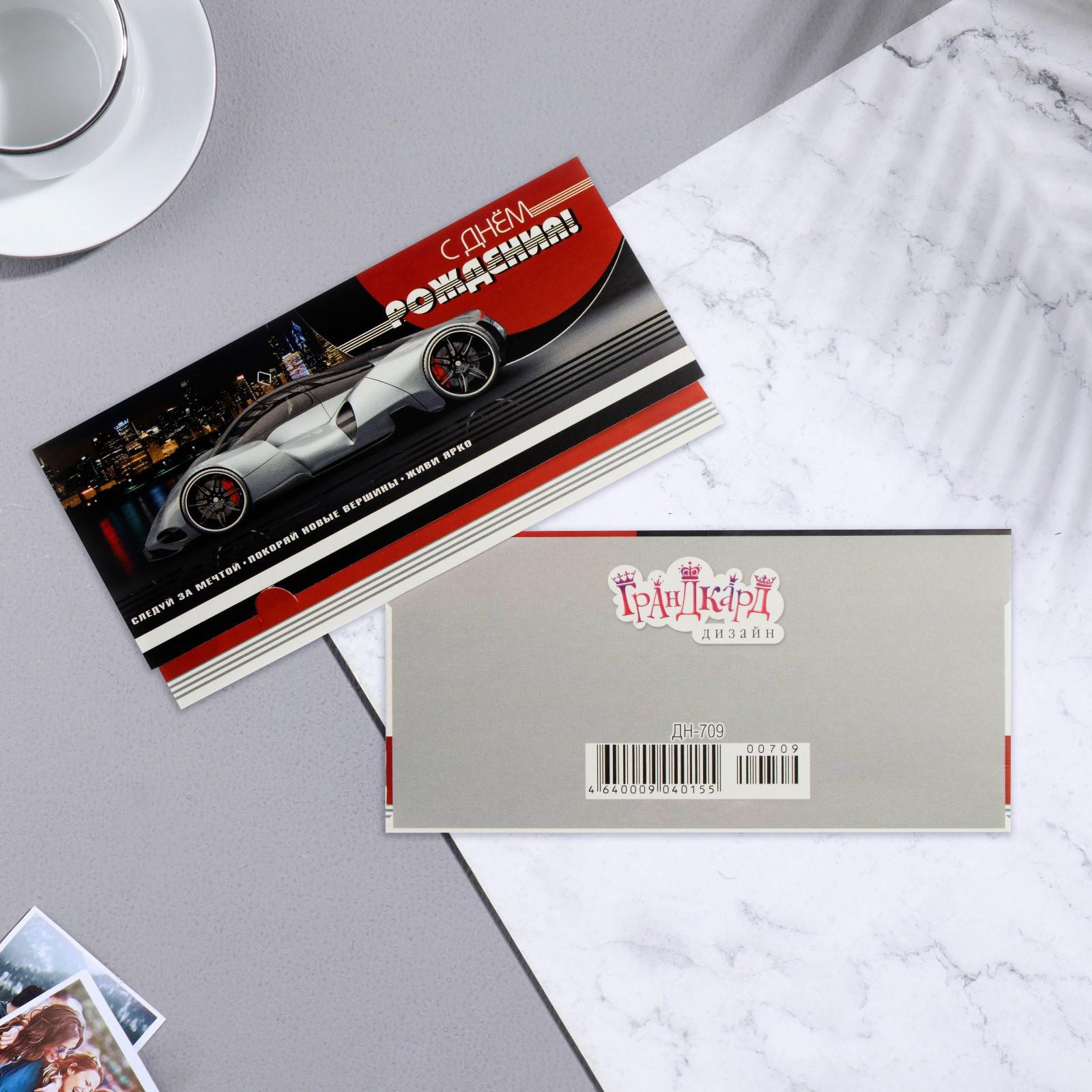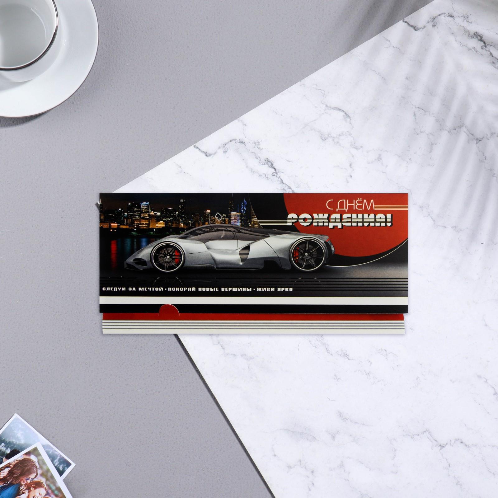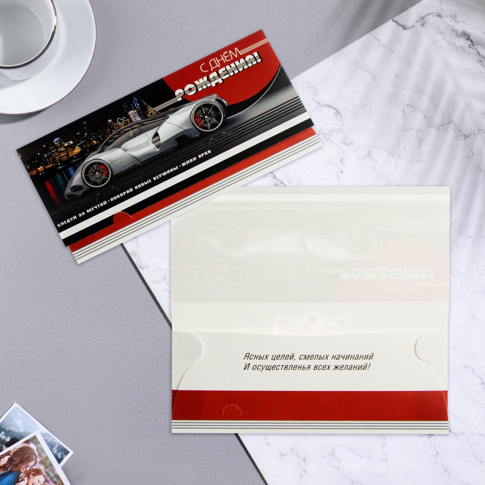 Конверт для денег "С Днем Рождения!" авто, глиттер, 16х8см