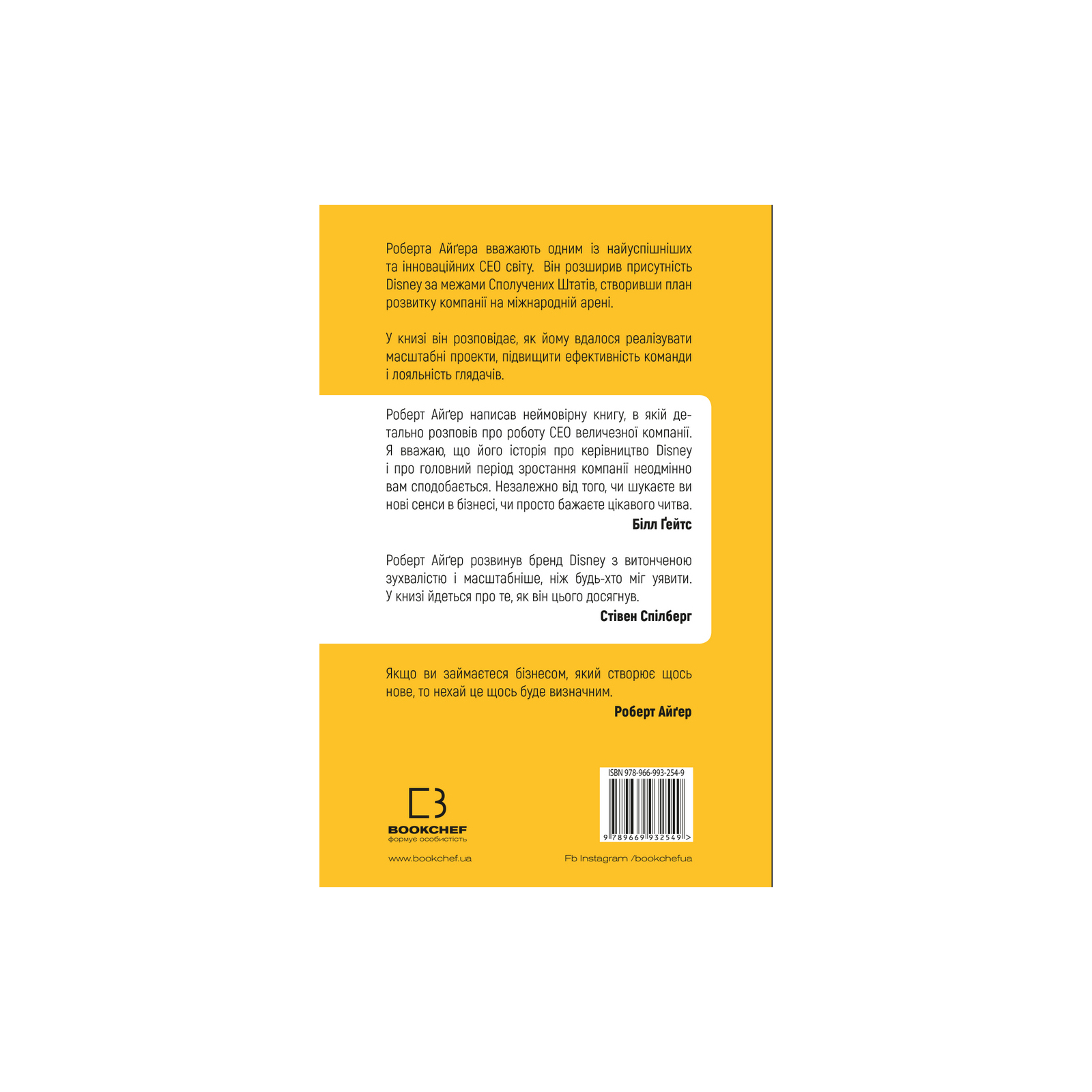 Роберта Айґера вважають одним із найуспішніших та інноваційних СЕО світу. Він розширив присутність Disney за межами Сполучених Штатів, створивши план розвитку на міжнародній арені. У книзі він розповідає, як йому вдалося реалізувати подібні масштабні проєкти, підвищити ефективність команди та лояльність глядачів.