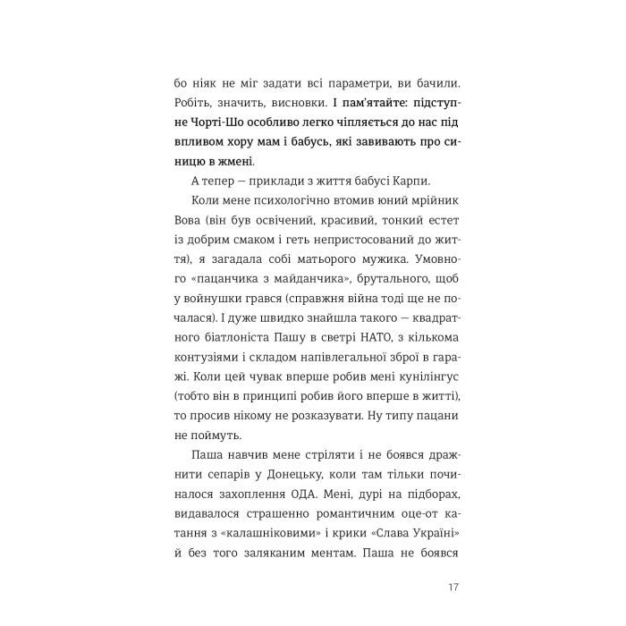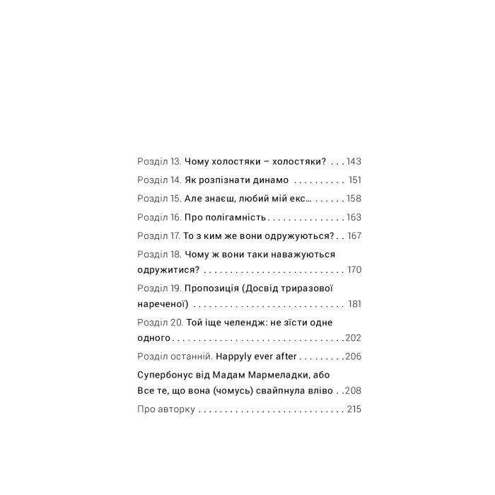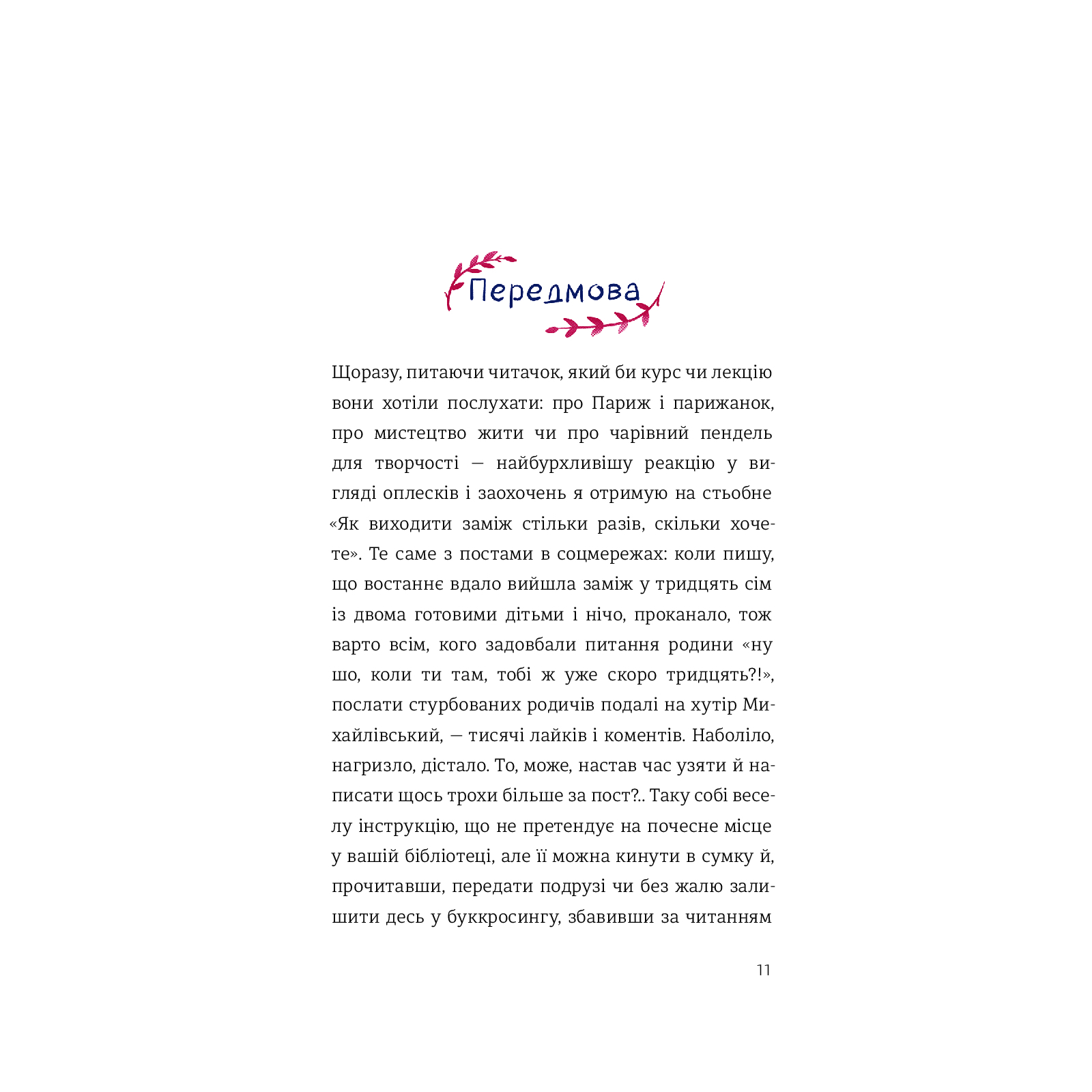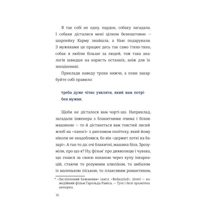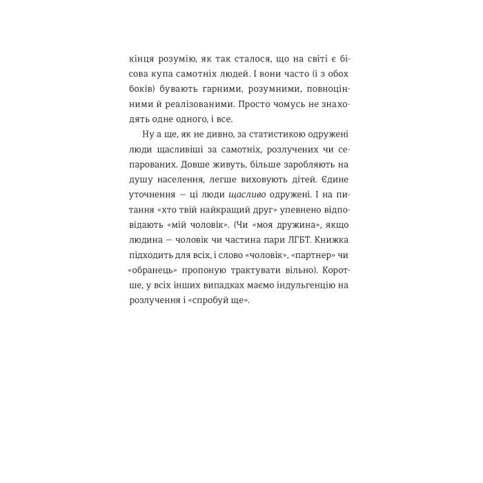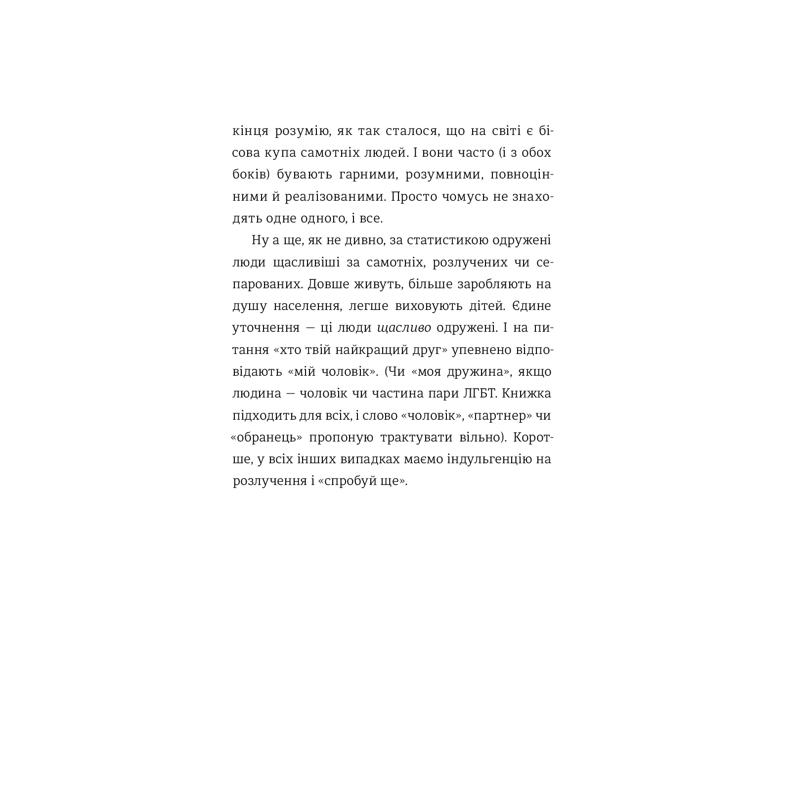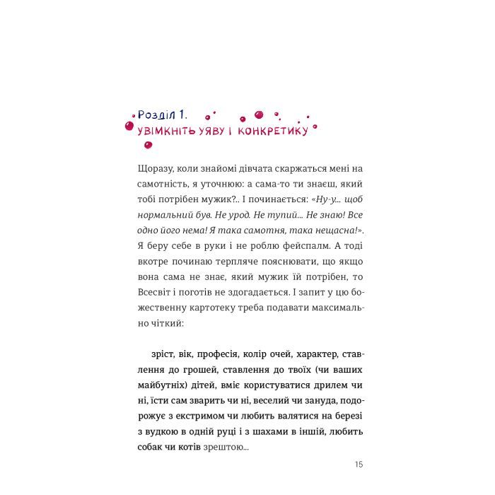 Крім того, письменниця наголошує, що не прагне займатися менторством і вдавати з себе гуриню й психологиню, її книжка — це всуціль життєвий досвід і висновки з її досвіду стосунків із чоловіками.