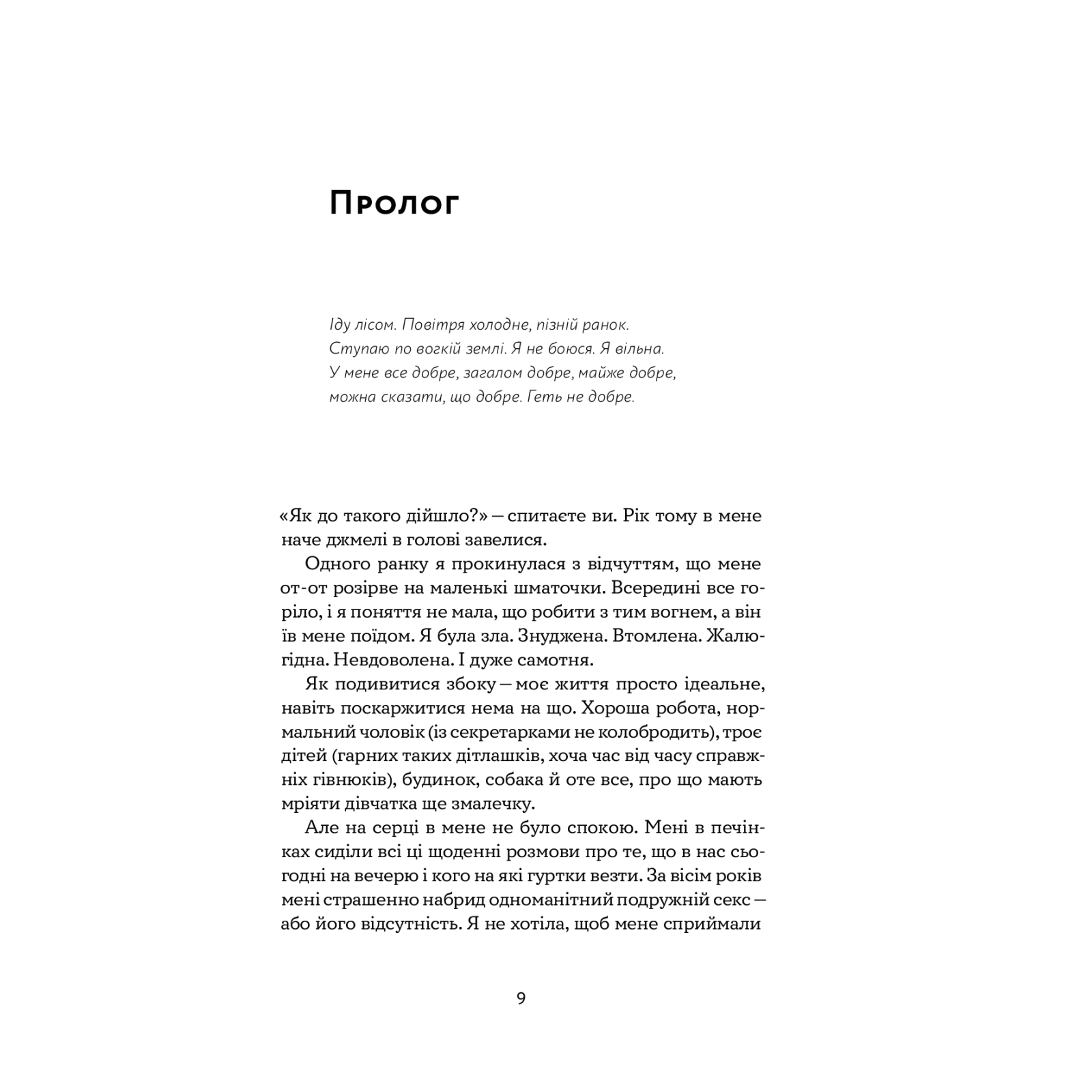 Це усвідомлення змусило Тову згадати про все, чого їй хотілося, але на що ніколи не вистачало часу. Список заборонених забаганок містив найпотаємніші мрії та навіть деякі шаленства. Так вона здійснила поїздку в Непал, запропонувала чоловікові відкритий шлюб, відірвалася з подругами на Ібіці, а ще купила вібратор.