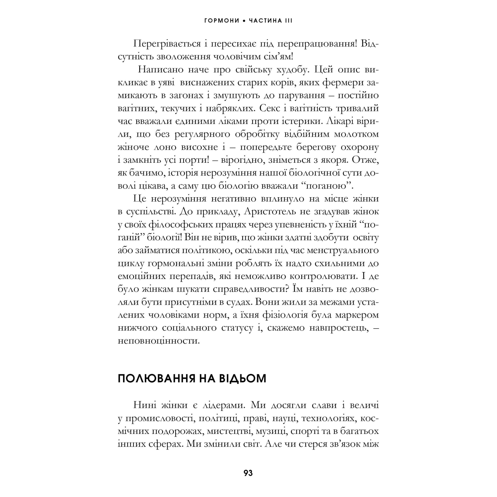 Науково-популярна розвідка відомої британської журналістки і психологині Елеонор Морган відкриває перед читачами дивовижний і складнющий світ жіночого тіла, а ще не менш дивовижний світ жіночих переживань у пошуках самих себе та свого місця в суспільстві, закони і стереотипи в якому впродовж не одного тисячоліття створювали чоловіки. Багатий, непростий і часто контроверсійний матеріал авторці вдалося викласти максимально доступно, тому книжка стане незамінним путівником для будь-якої жінки на шляху до самопізнання, а для будь-якого чоловіка дороговказом до якнайкращого розуміння своєї коханої, матері, сестри, дочки.