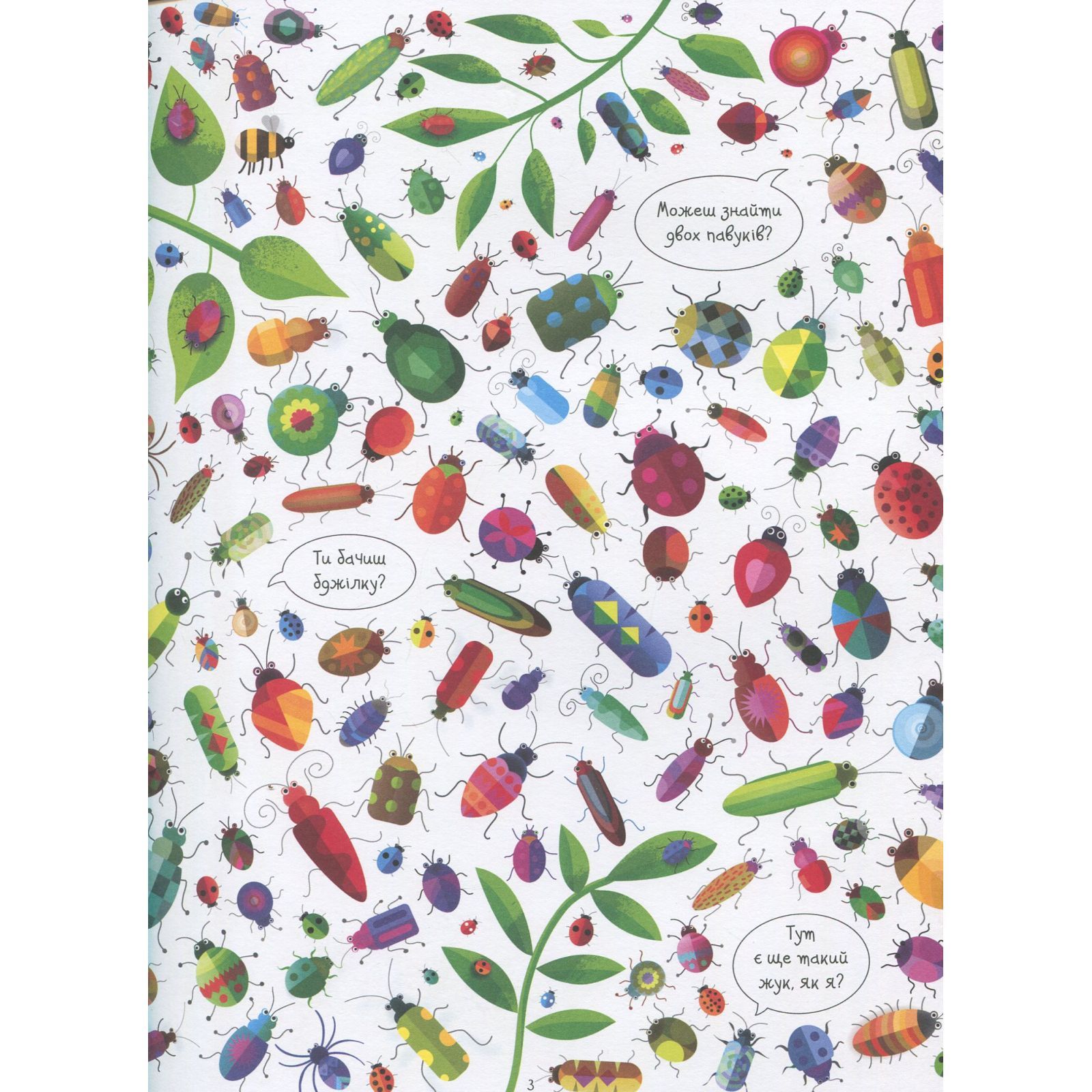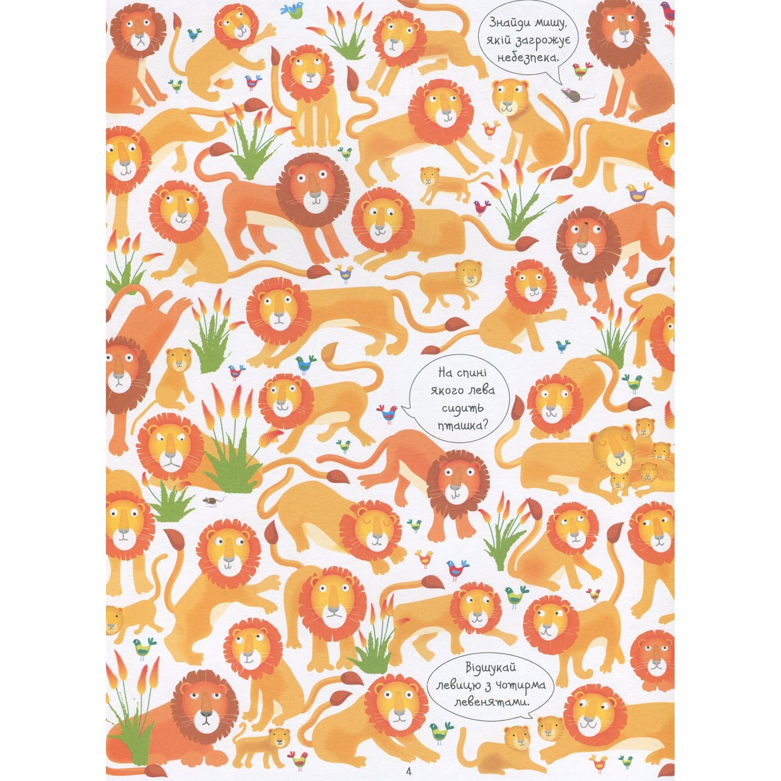 Запрошуємо найуважніших та найдопитливіших поринути в неповторний світ тварин! На кожній сторінці цієї дивовижної книги — безліч диких і домашніх тварин, комах і риб, а також різноманітних предметів та цікавих деталей, які треба знайти, порівняти і порахувати.