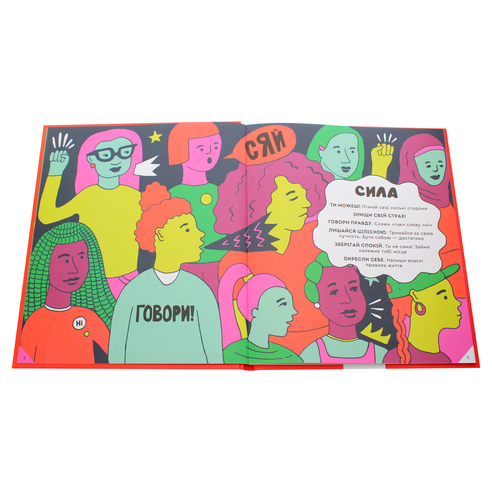 Яскрава і надихаюча, ця книжка-порадниця стане підтримкою для всіх дівчат, які перебувають на початку свого становлення, у період, коли вже не хочеться, щоб тебе вважали дитиною, у період перших протестів і заяв, перших закоханостей, пошуку своїх орієнтирів. Вона допоможе встановити свої межі, впоратись зі страхами та невпевненістю, наважитися бути собою і, можливо, навіть змінити світ.