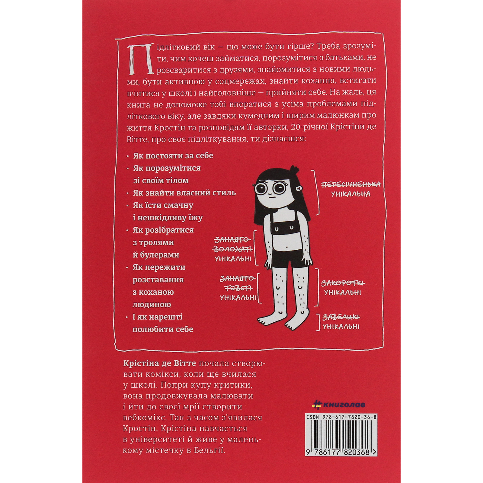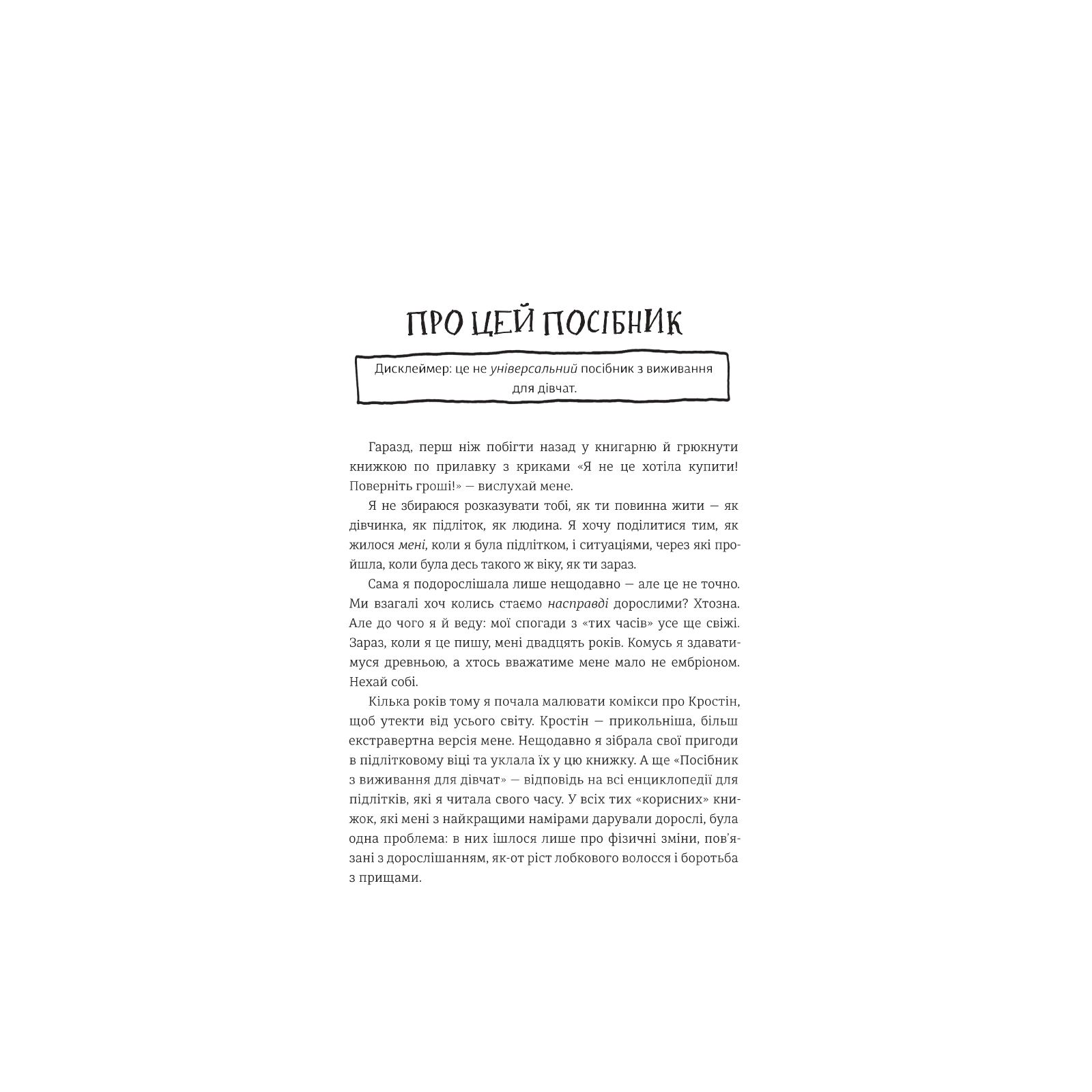 Що означає бути дівчинкою-підлітком? Це не лише безтурботно й весело жити, а й щодня шукати відповіді на важливі питання, розбиратися в емоціях і почуттях, налагоджувати відносини з людьми, вчитися любити себе та інших, переживати всі падіння та злети дорослішання й робити помилки, які перетворяться на життєвий досвід.