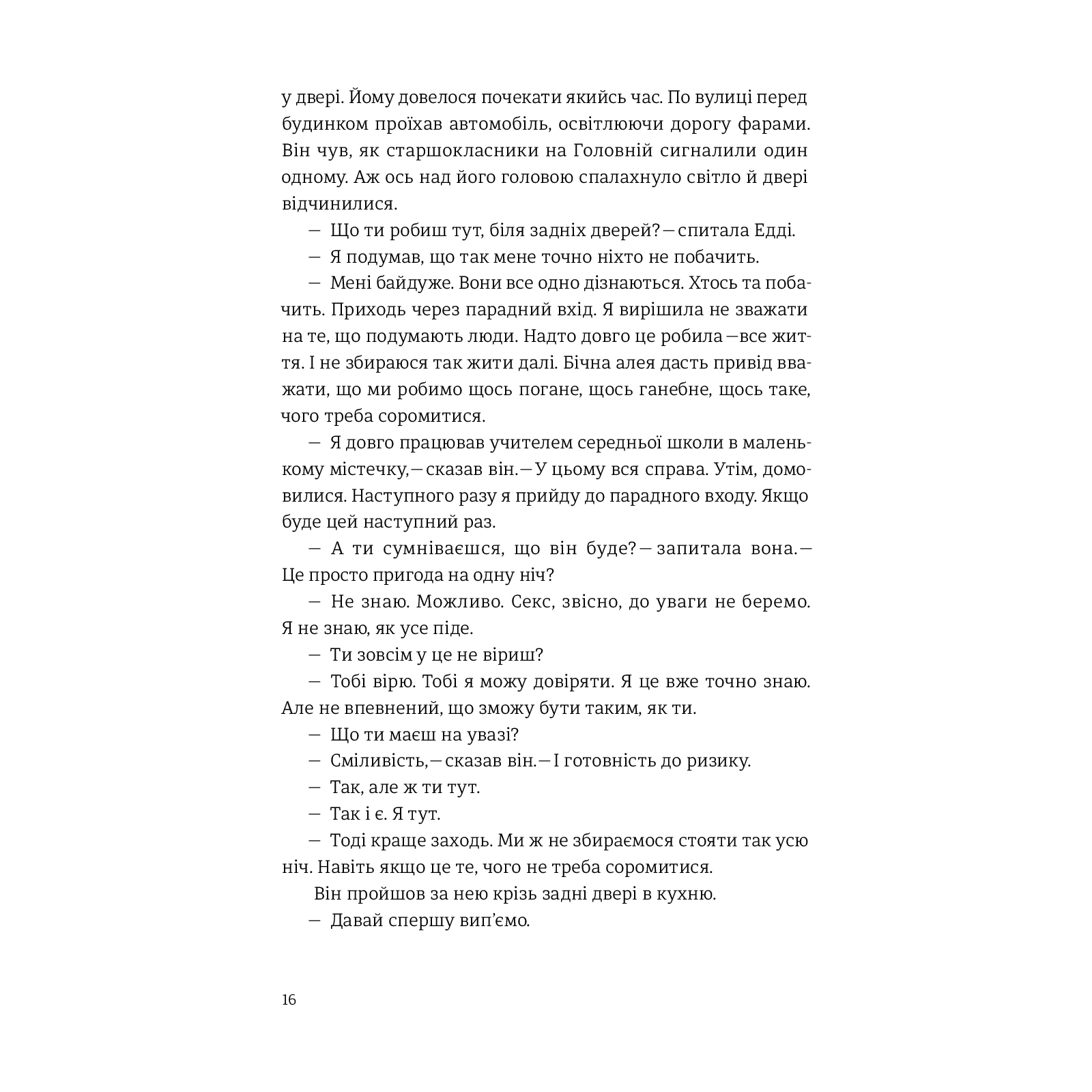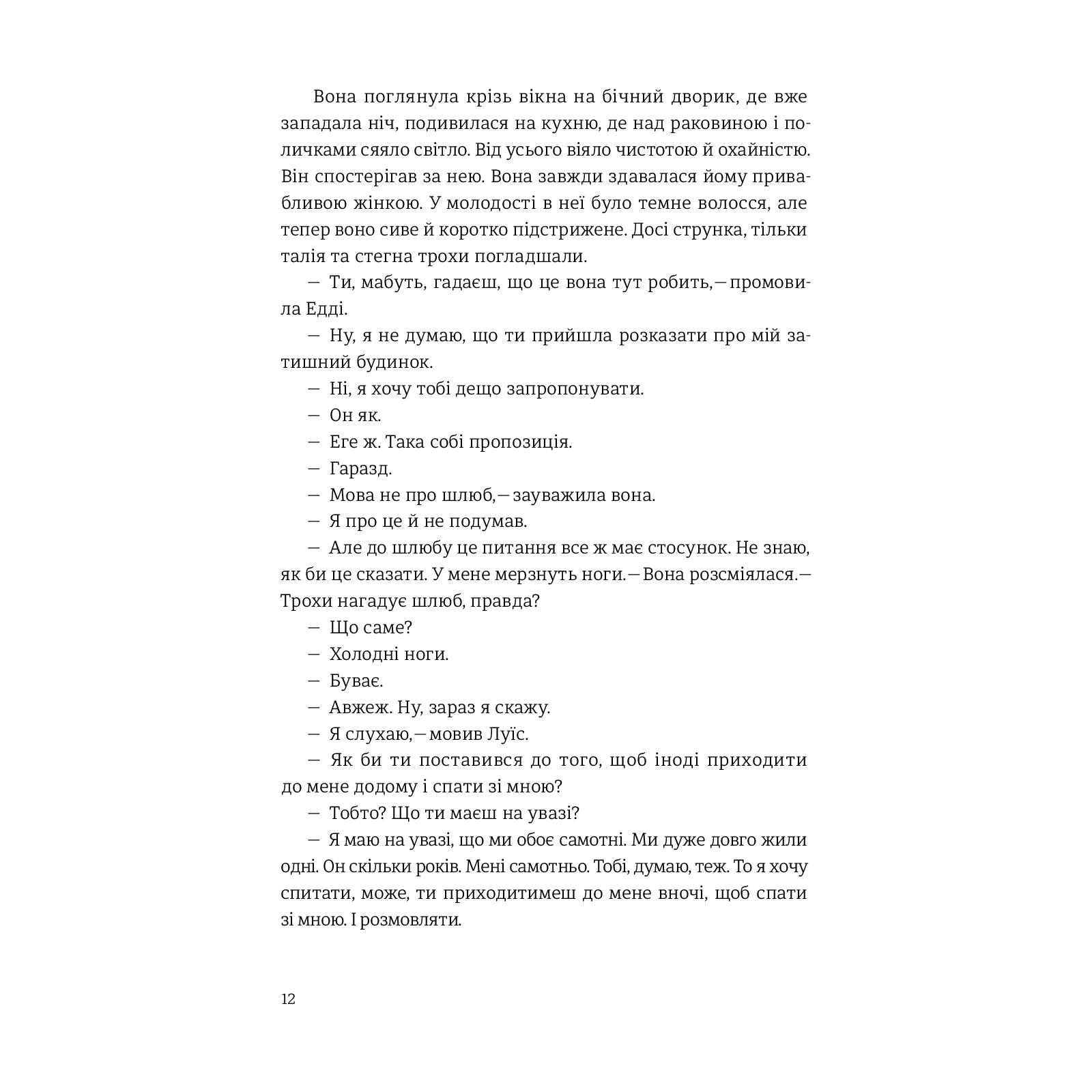 «Наші душі вночі» — останній роман американського письменника, який великі видання США відзначили як «Найкращу книгу року». Це зворушлива, глибока і ніжна історія про другий шанс, хиткі рамки пристойності та самотність.