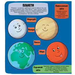 Увага всім маленьким дослідникам! Вирушаймо в космос, щоб розвідати якнайбільше про Сонячну систему та простори далеко за її межами. Заглядай у віконця - і побачиш, на що схожі планети, як влаштоване Сонце і багато інших космічних чудес.