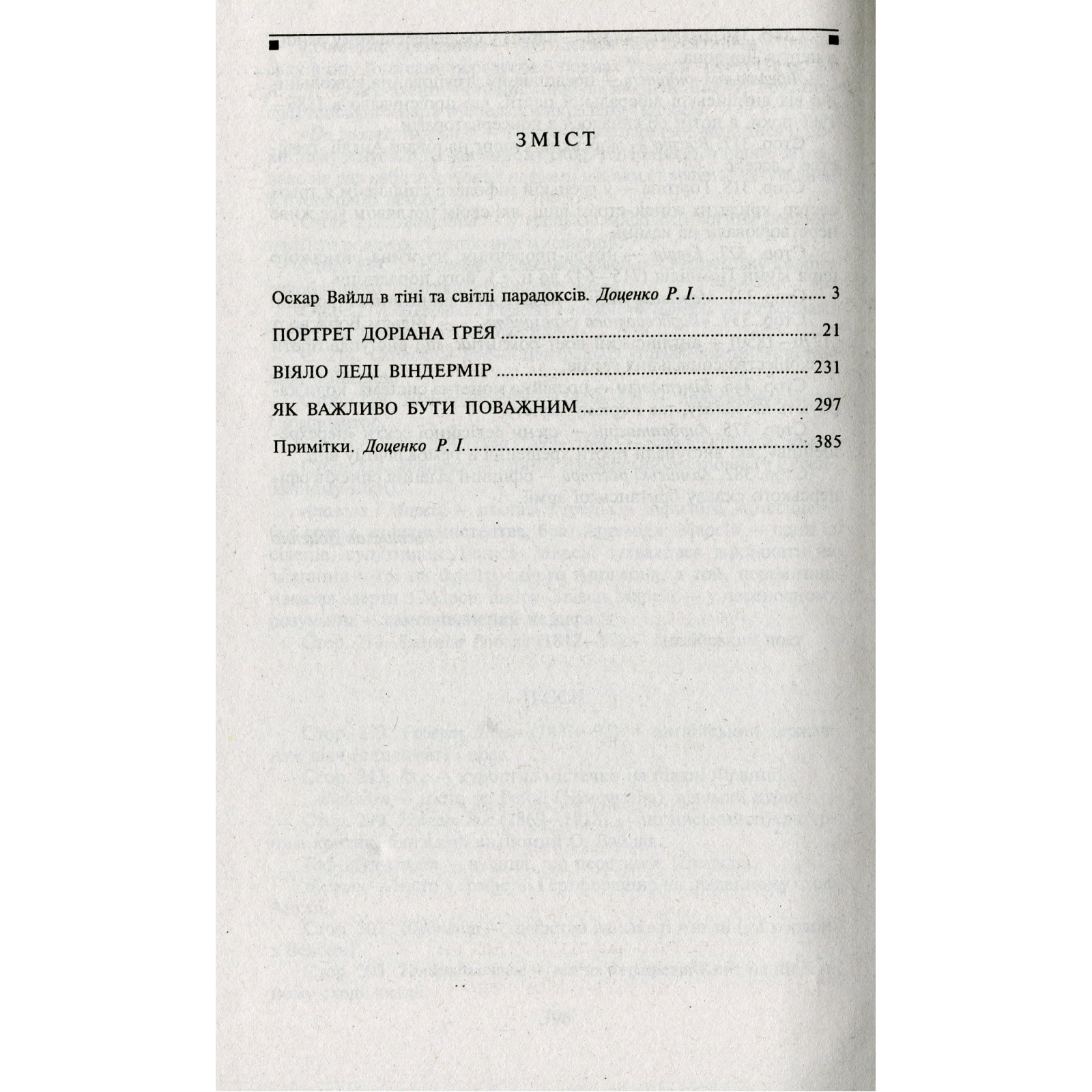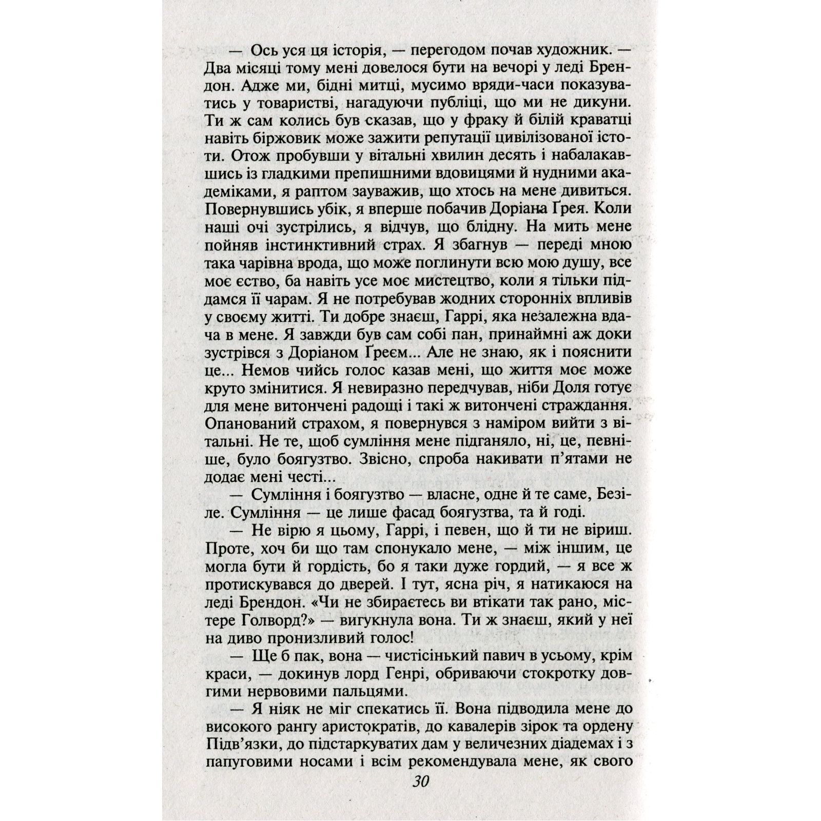 Єдиний роман письменника — «Портрет Доріана Ґрея», створений у рекордно короткий термін — за три тижні, приніс авторовi карколомний успіх і скандальну славу. Головний герой — юнак, наділений неймовірною красою. Милуючись своїм портретом, Доріан висловлює бажання, щоб портрет старів, а він завжди залишався молодим. З того самого часу жодної зморшки не з’являлося на вічно юному обличчі джентльмена Ґрея, який жив у пороці й розпусті. Всі його злочини відкладали відбиток лише на його портреті, який з кожним днем ставав усе гірше та старів. Але за все треба платити...