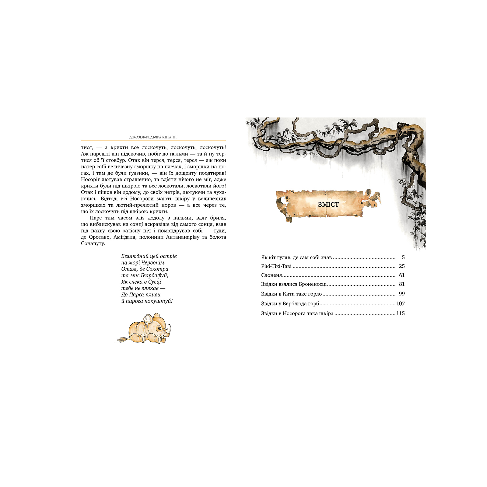 Чому кіт гуляє, де сам собі знає? Чому мангуст не дружити із пітонами? Звідки у слоненя довгий хобот? Чому у верблюда з'явився горб? Звідки взялися броненосці? На ці та інші не менш цікаві питання юний читач знайде відповіді, прочитавши цю цікаву та захопливу книжку класика англійської літератури, одного з перших лауреатів Нобелівської премії Джозефа-Редьярда Кіплінга.