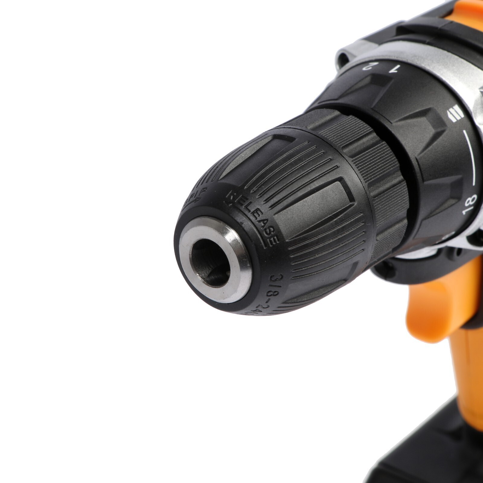Две скорости дают возможность использования высокой или низкой скорости сверления. Идеальная регулировка для точного сверления благодаря 18-ти крутящих моментов. Отличная мощность достигается из-за максимального крутящего момента 32 Нм. Зажимной патрон 3/8 дюймов для самых разных областей применения.