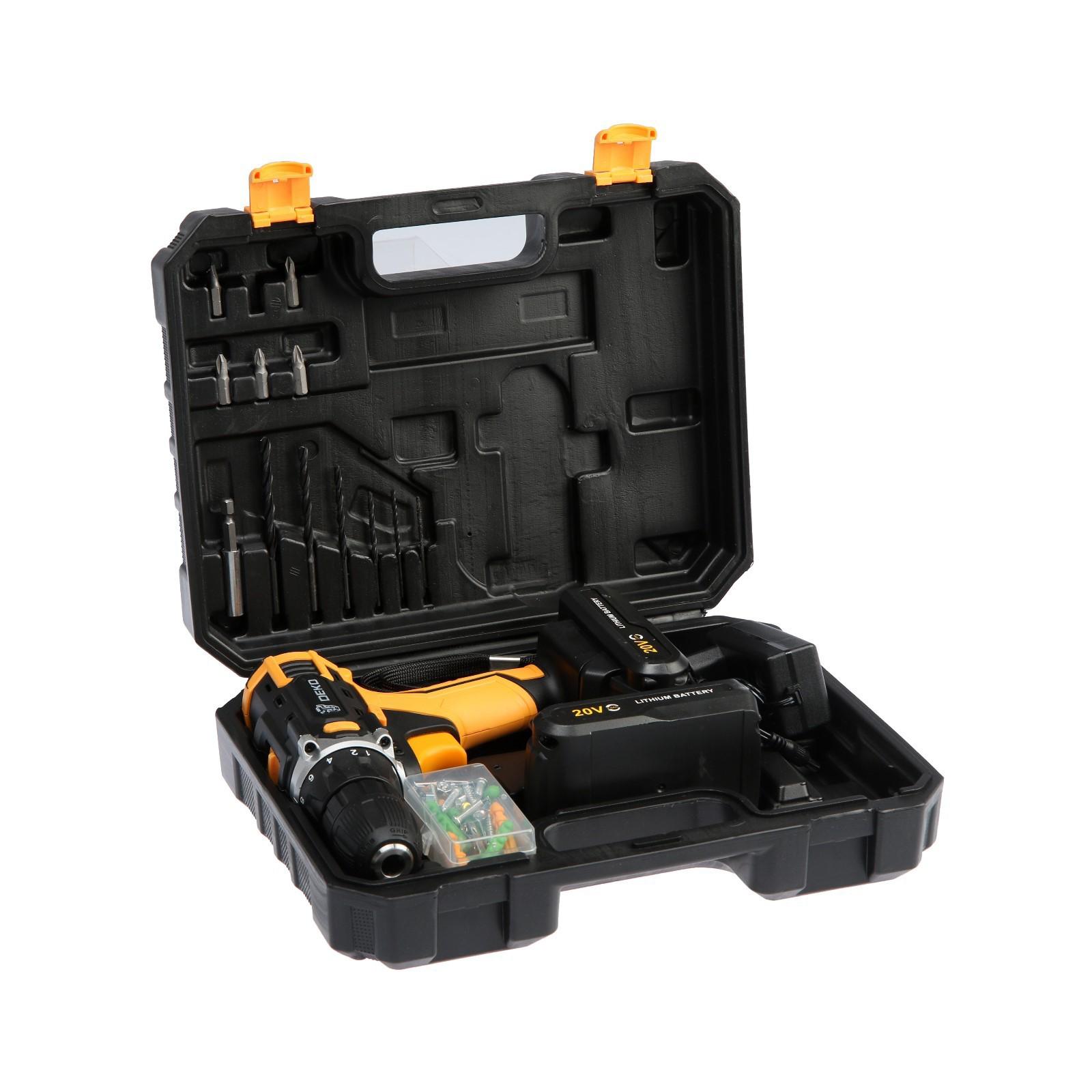 Дрель-шуруповерт DEKO DKCD20FU-Li, 20 В, 2х2 Ач, Li-lon, 42 Нм, 350/1350 об/мин + 63 пр.