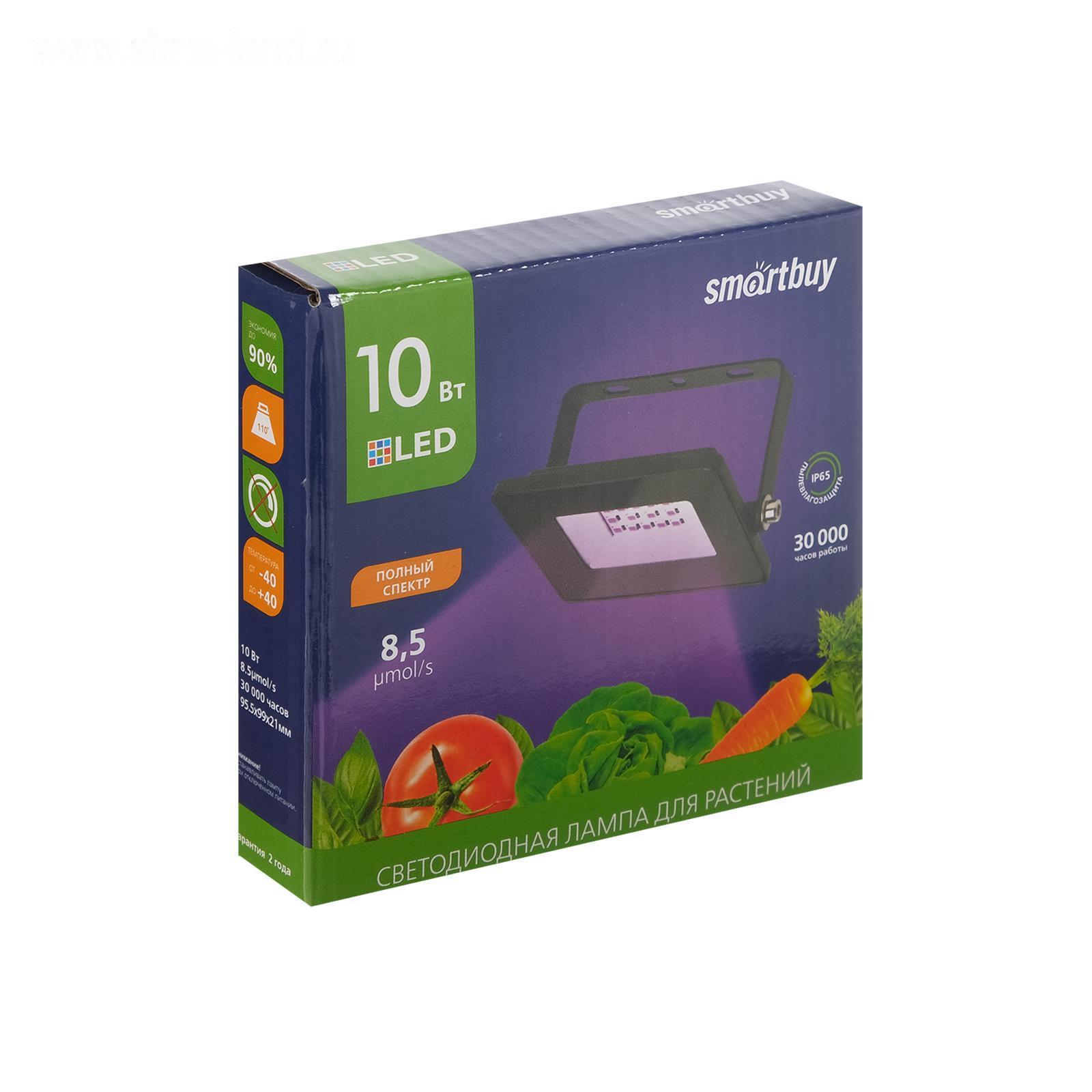 Фитопрожектор светодиодный Smartbuy FL SMD LIGHT, 10 Вт, IP65, 240 В, полноспектральный