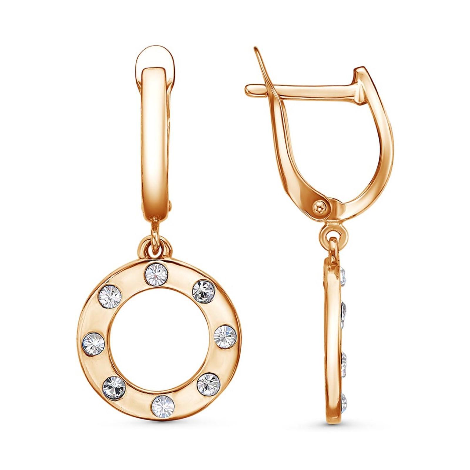 Серьги "Кольцо" со стразами , розовое золочение, цвет белый