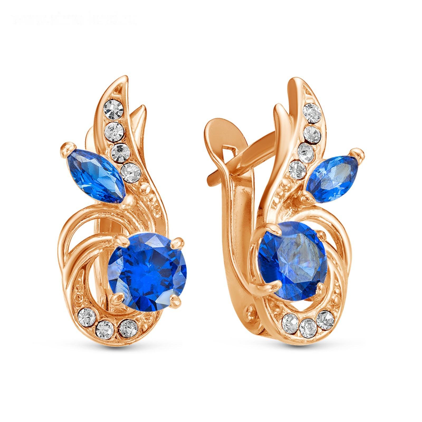 Серьги "Возрождение", розовое золочение, цвет синий