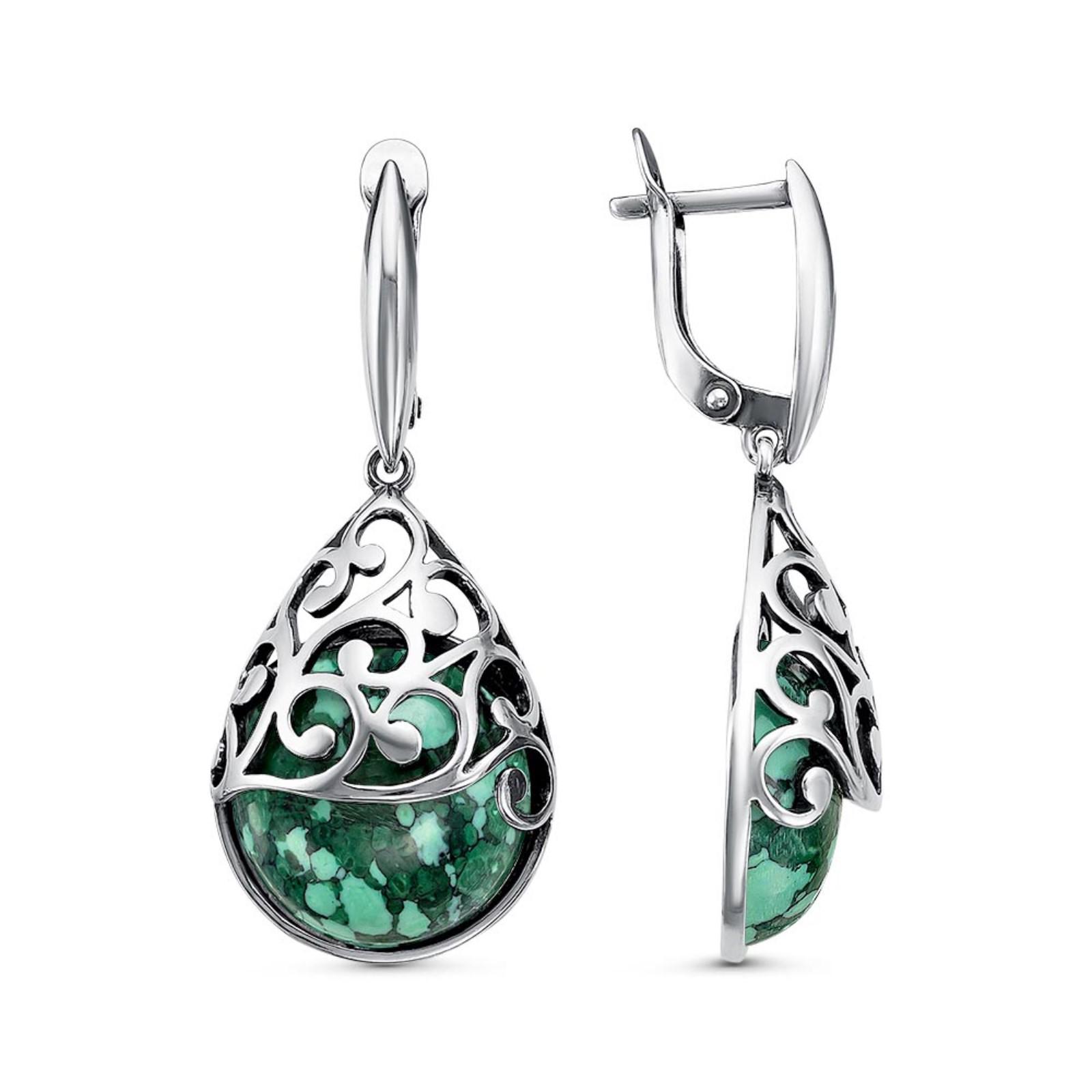 Серьги капля ажурная "Малахит", посеребрение с оксидированием