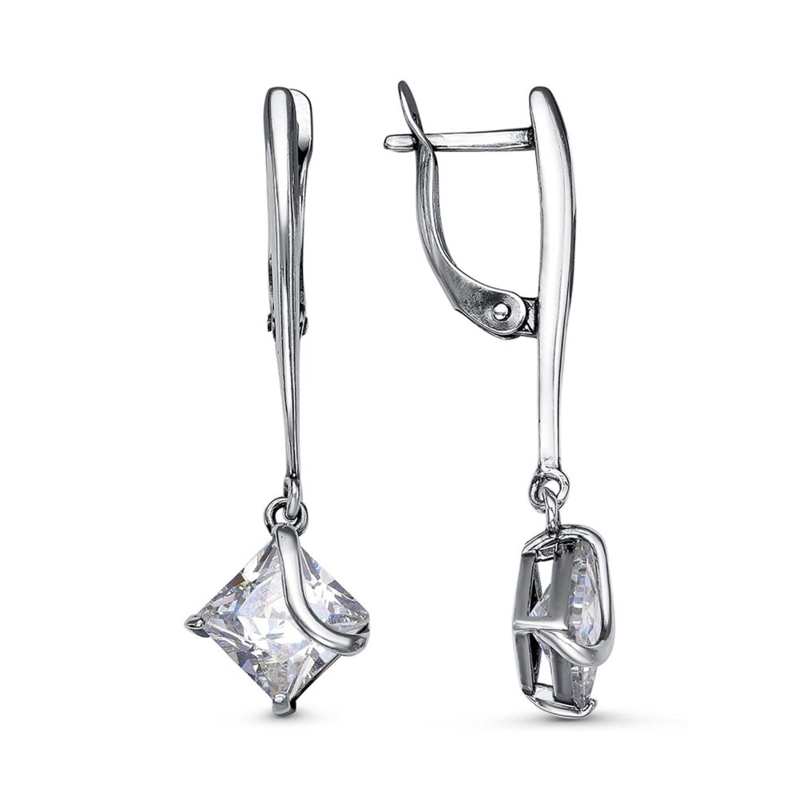 Серьги "Ромб с фианитом" посеребрение с оксидированием, цвет белый
