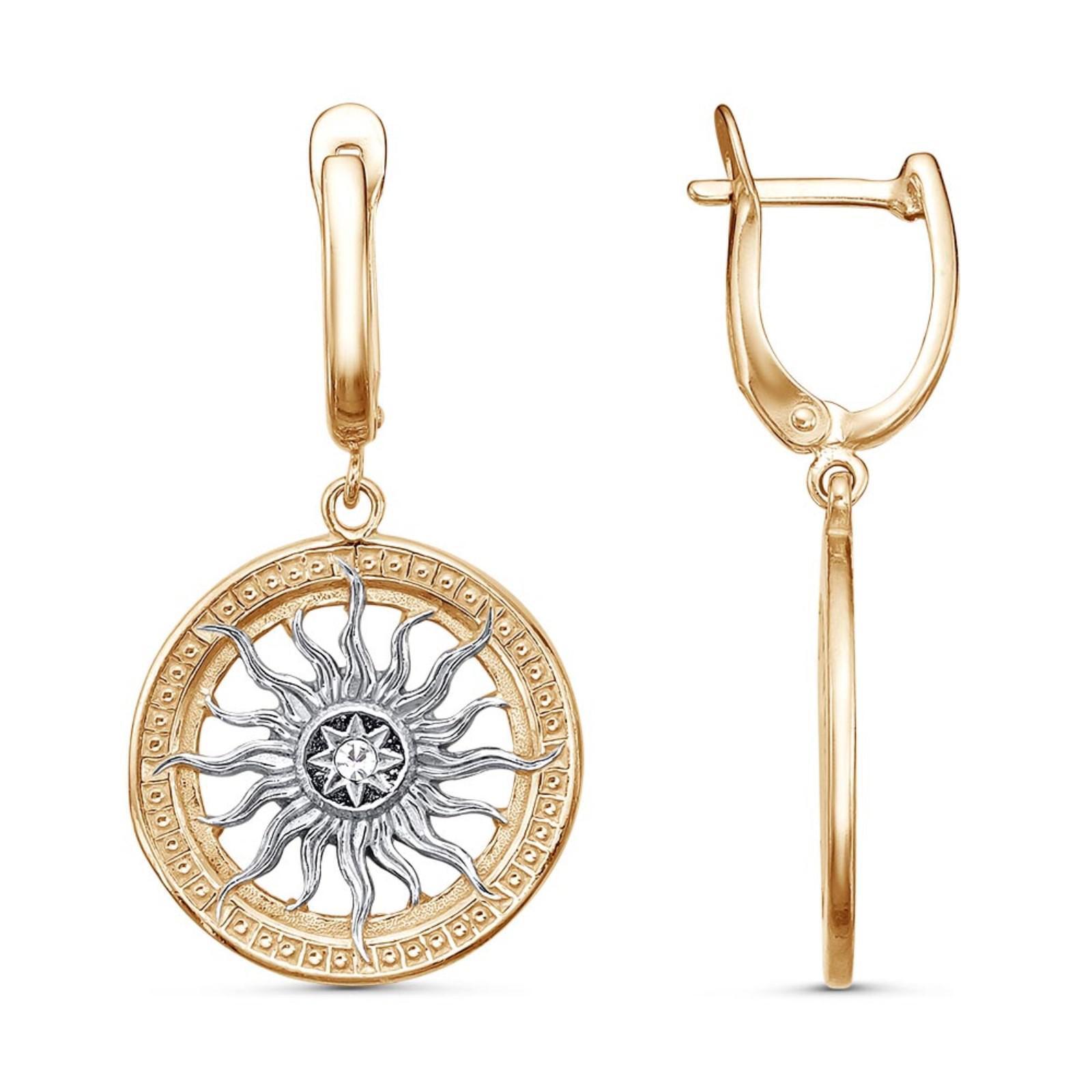 Серьги "Солнце", позолота с выборочным родированием