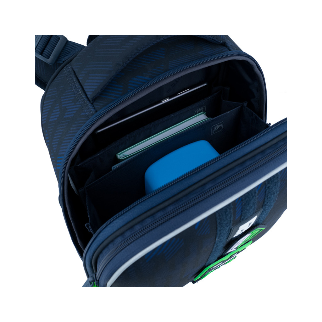 Каркасна форма допомагає непосидам систематизувати речі та вже з першого класу привчає до порядку. Завдяки стійкому щільному коробу, рюкзак відмінно тримає форму. Стінки не мнуться та не прогинаються, а значить – зошити надійно захищені від пошкоджень.