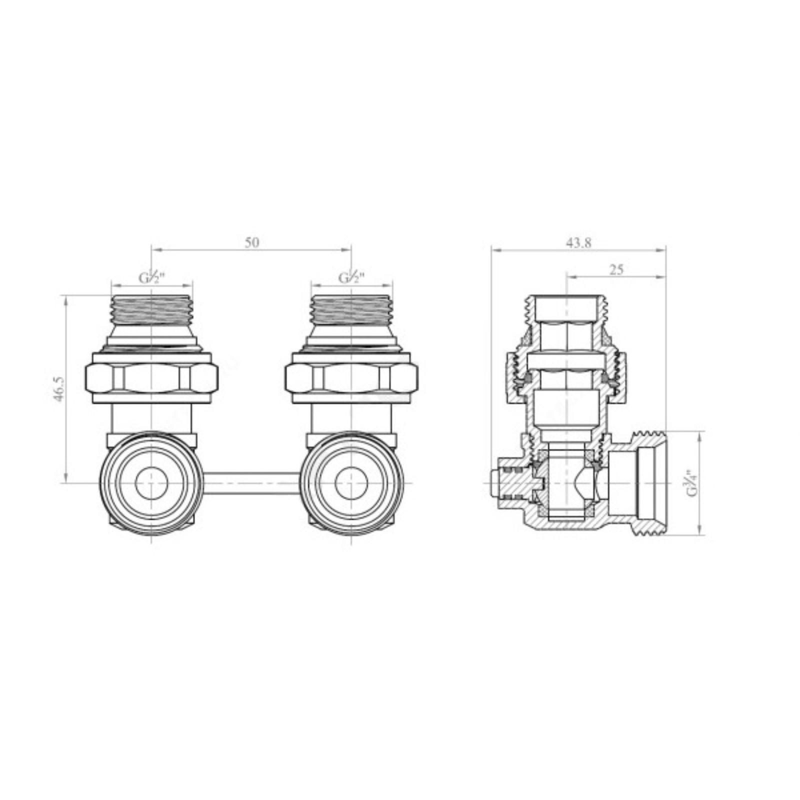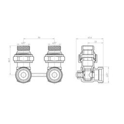 Узел подключения радиатора Ogint 022-4040, 1/2"x3/4, PN 10, для двухтрубной системы, угловой