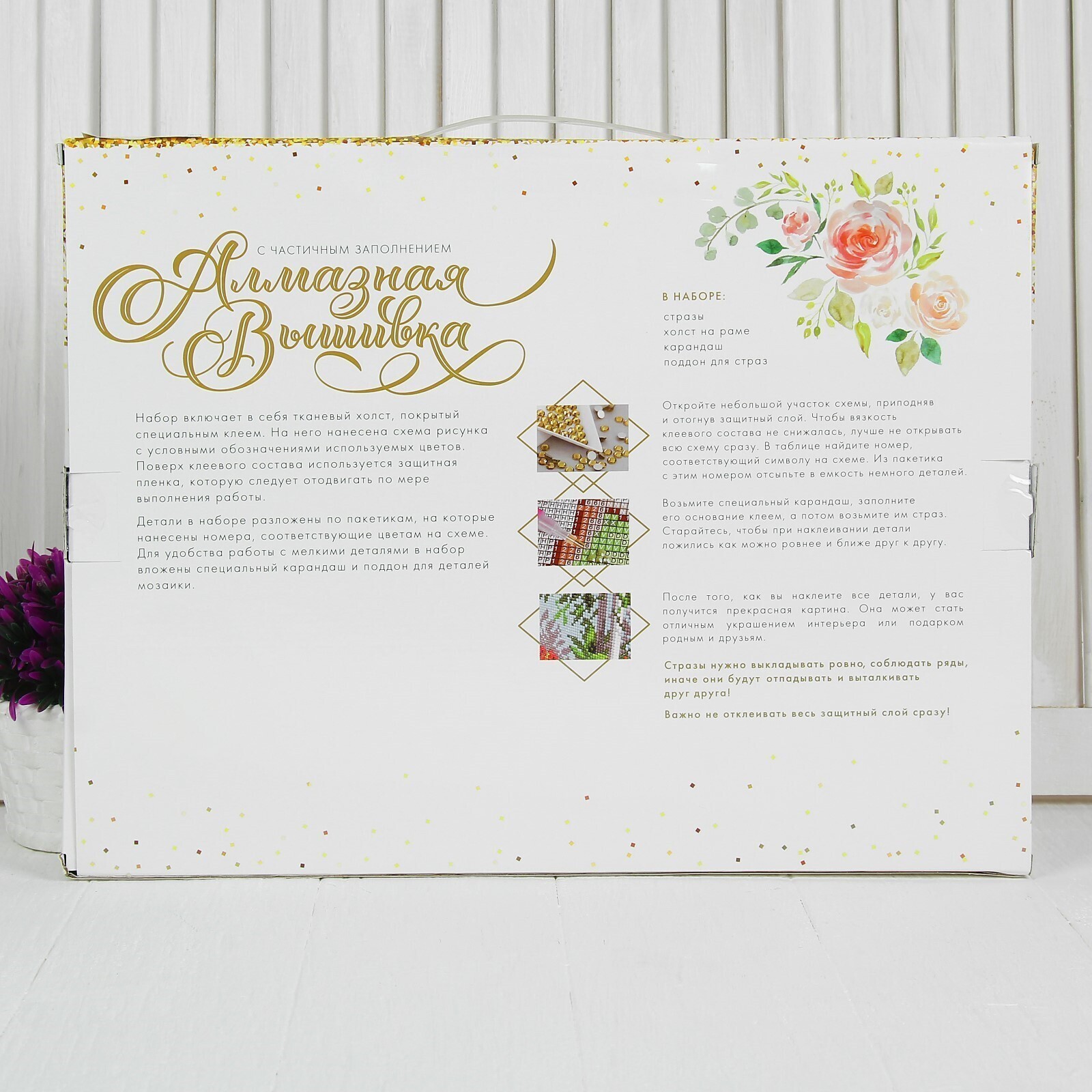 Часть картины предстоит заполнить стразами, другая часть напечатана на холсте-основе — такое изделие легче и быстрее создать. Поэтому набор подойдёт для тех, кто впервые пробует свои силы в этой технике или любит быстро добиваться результата.