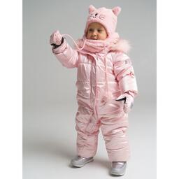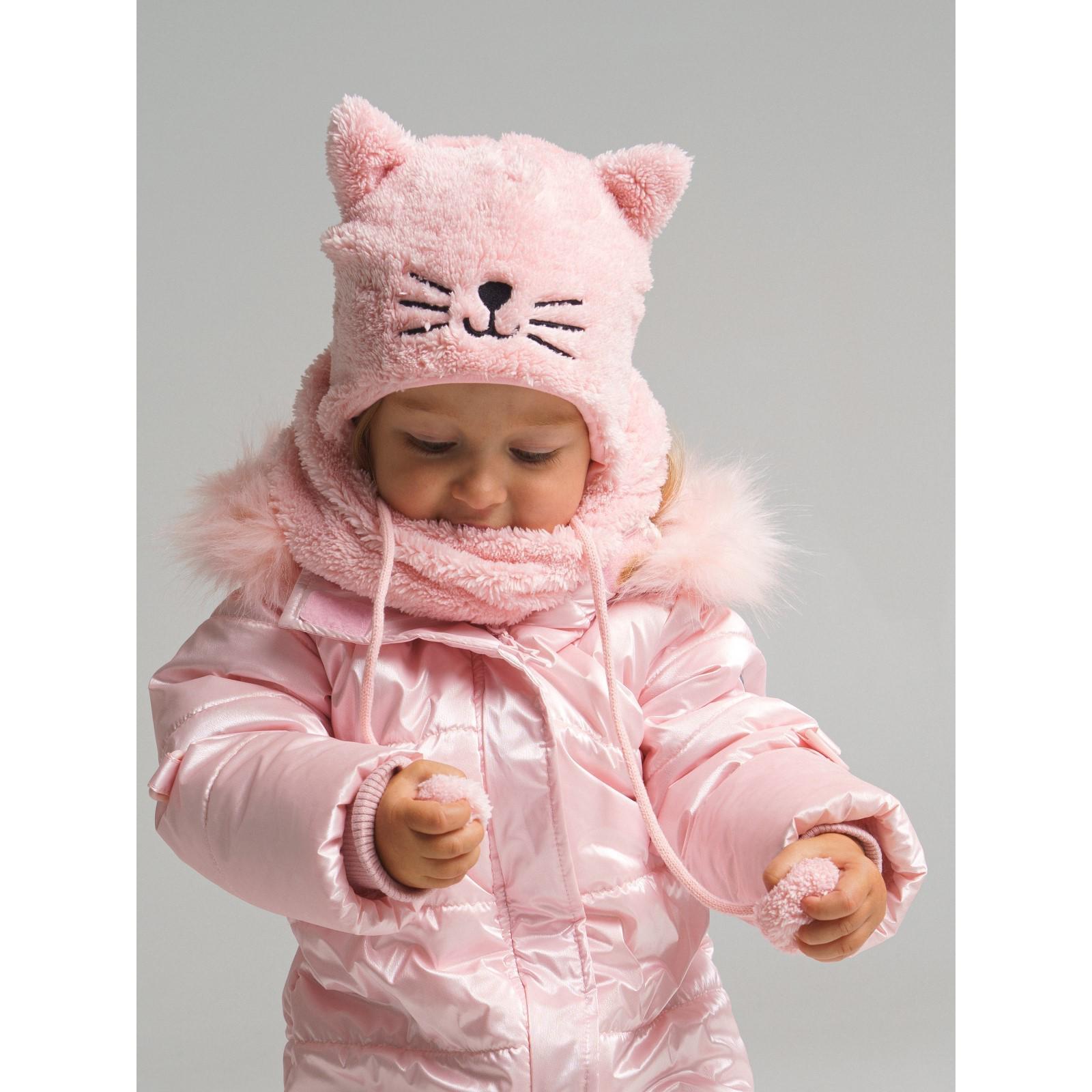 Комплект детский вязаный для девочки: шапка и снуд, размер 46, цвет светло-розовый