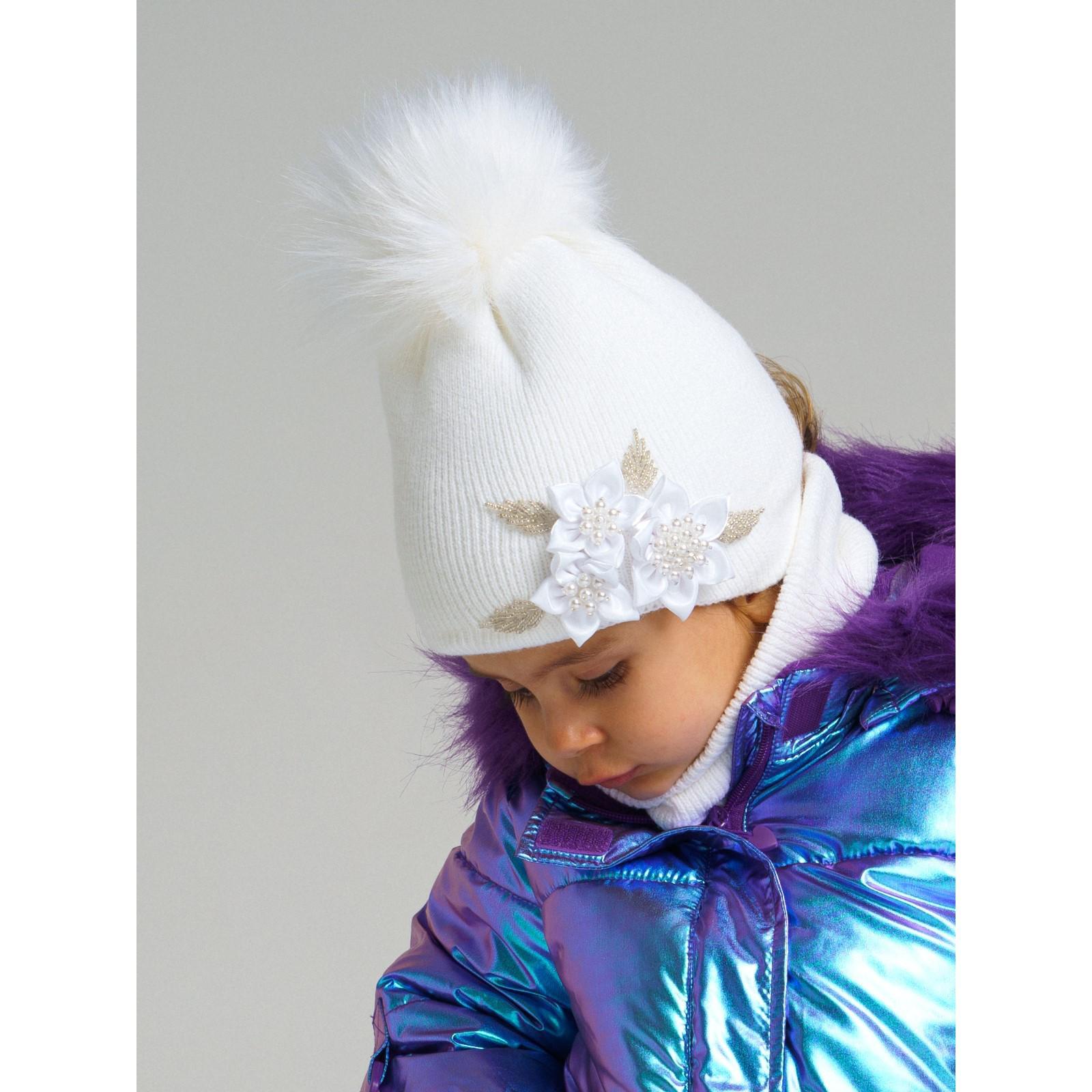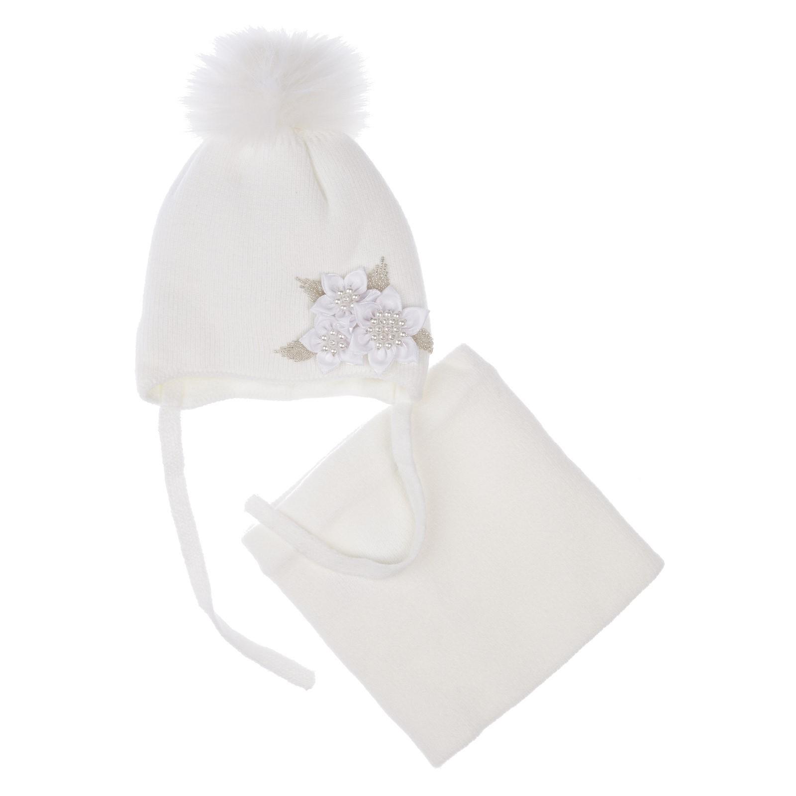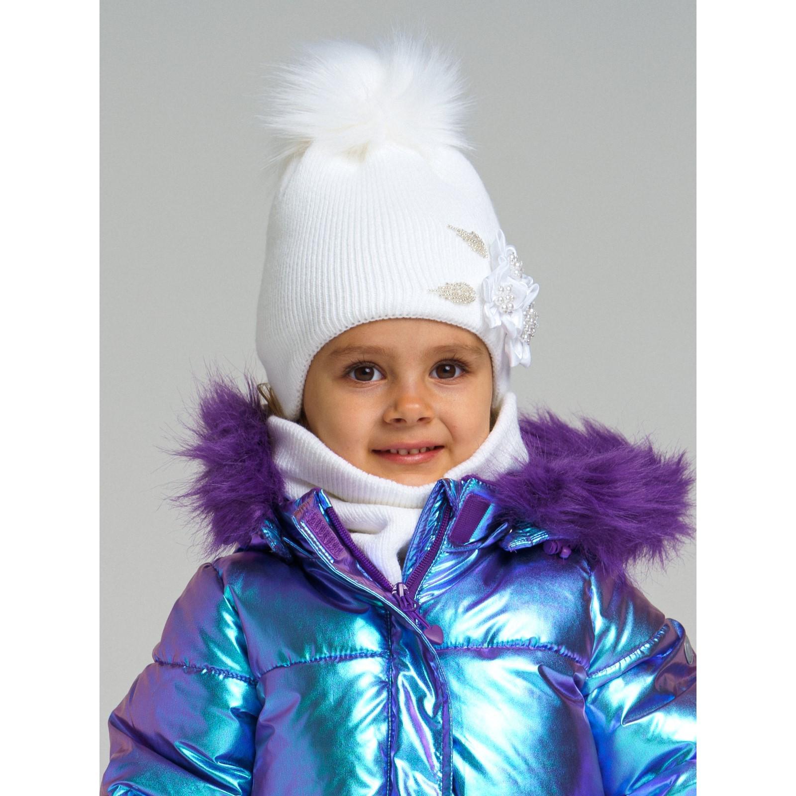 Комплект детский вязаный для девочки: шапка и снуд, размер 46, цвет белый