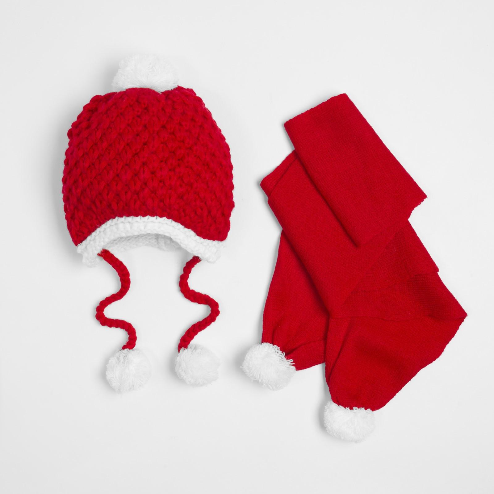 Комплект для девочки (шапка, шарф), размер 50, цвет красный