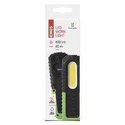 Якісний протиударний ліхтар P4531 від чеського виробника EMOS, акумуляторний. Корпус складається з ударостійкого АБС пластику і гуми. Є два джерела світла для освітлення ближньої і дальньої дистанції. Поворотна ручка, петля, гачок, магніт в підставі робить ліхтарик легко-фіксується в будь-якому положенні. Функція швидкого вимикання Ця функція вам полегшить вимикання світильника з багатьма режимами. Просто будете світити потрібним вам способом, а потім вимкніть світильник лише одним натисканням кнопки - без необхідності проходити всі інші режими 2. Виберіть режим освітлення, який вам найкраще підходить. 3. Після 10 секунд світіння в обраному режимі, автоматично активується функція швидкого вимикання. 4. Наступним натисканням кнопки, світильник негайно відключається (інші режими світіння пропускаються). Захист акумуляторної батареї Продукт з цією функцією має захисне "коло", яке запобігає непропорційно низьку розрядку акумулятора і перезарядку під час зарядки, що може привести до нагрівання, розриву, і поломки самого пристрою. Найбільш важливі характеристики: світловий потік; дальність променя режими освітлення тривалість час роботи