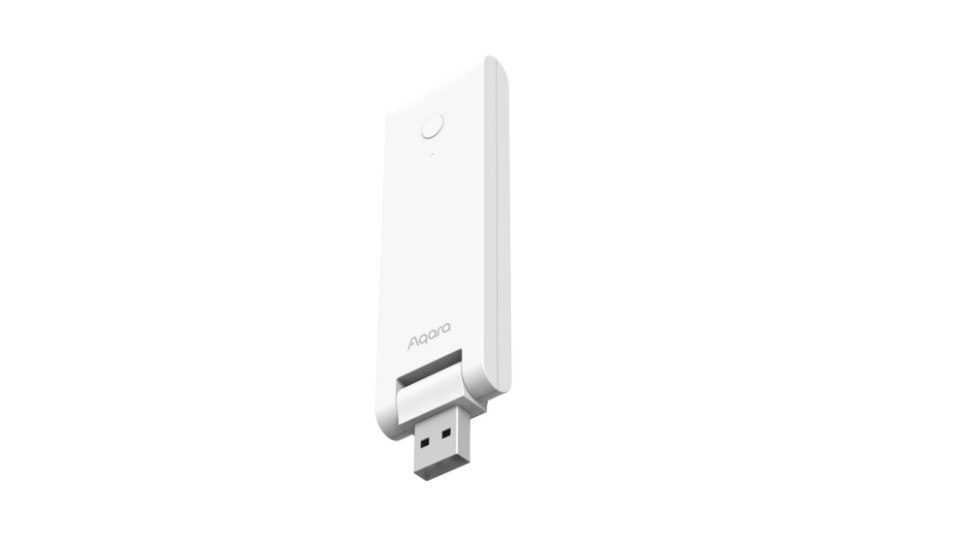 Самый компактный, но не уступающий по возможностям другим центр умного дома Aqara. Для подключения можно использовать любой USB-A разъём. Хаб работает на протоколе Zigbee 3.0 и может выступать в роли повторителя Wi-Fi сигнала.