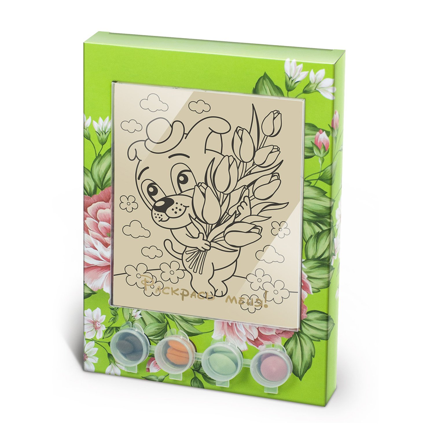 Наборы шоколадные Лакомства для здоровья Cъедобная картинка-раскраска Собачка с цветами ШД168.110-ц