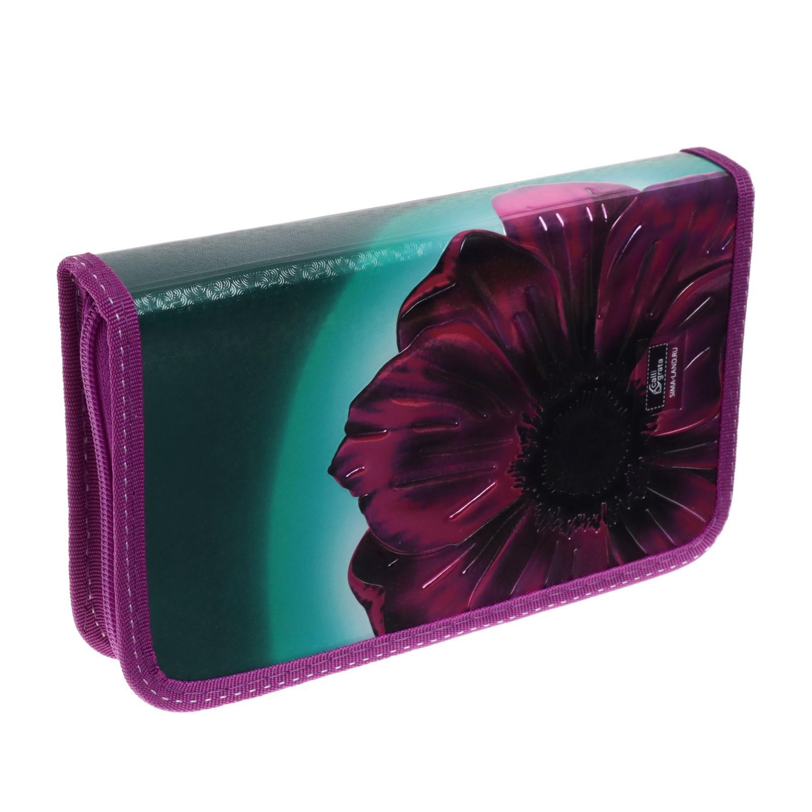 Пенал 1 секция, 115 х 205 мм, 81П26 Calligrata "Цветок" (объемный 3D-рисунок с эффектом металлика)