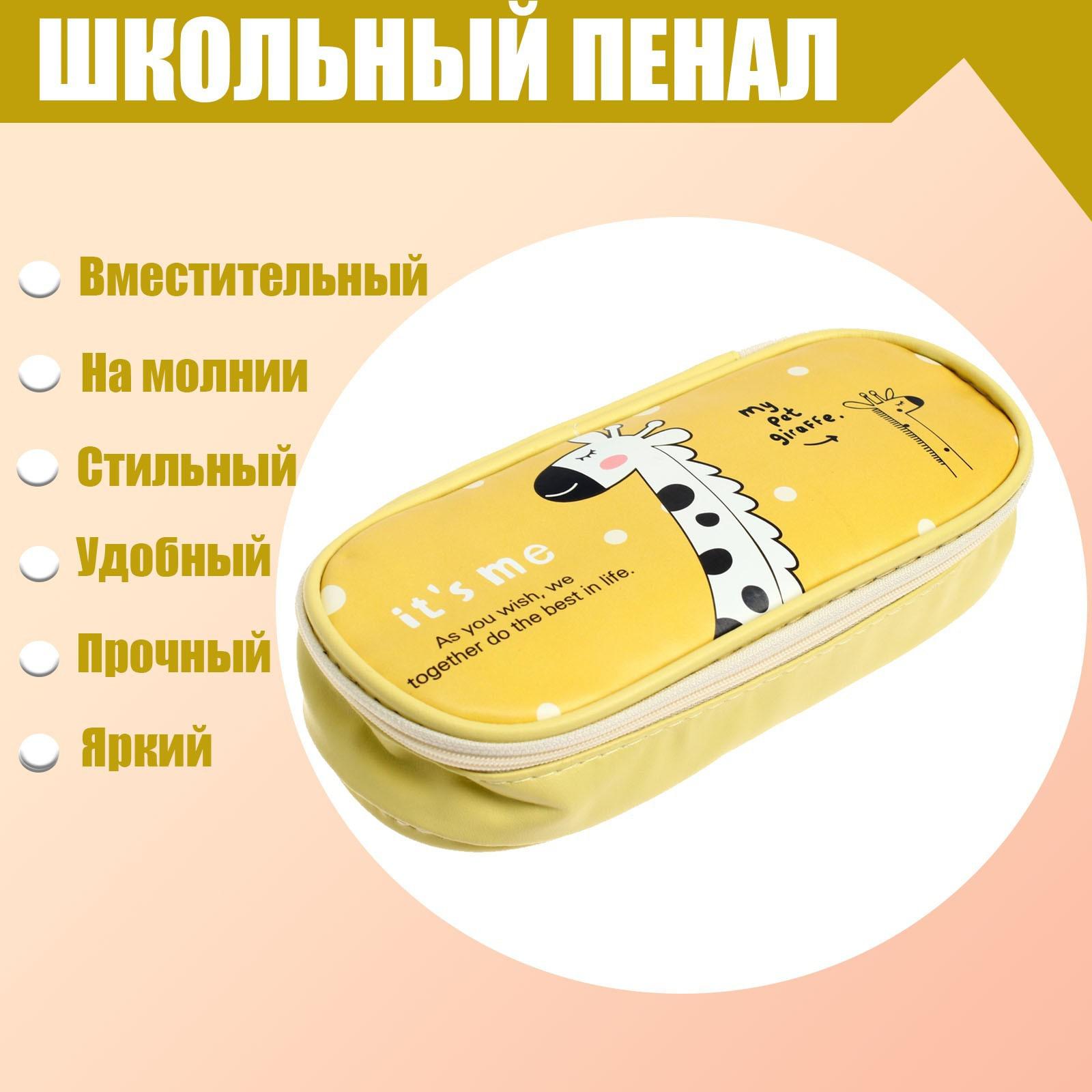 Пенал школьный "Жирафик" на молнии, жёлтый