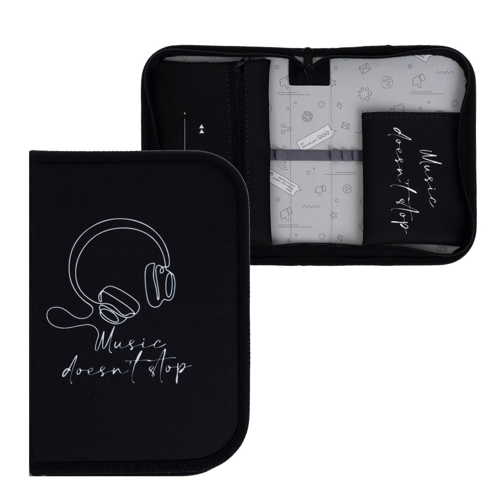 Пенал 1 секция Calligrata "Наушники", 140 х 210 мм, откидной карман и косметичка, ткань