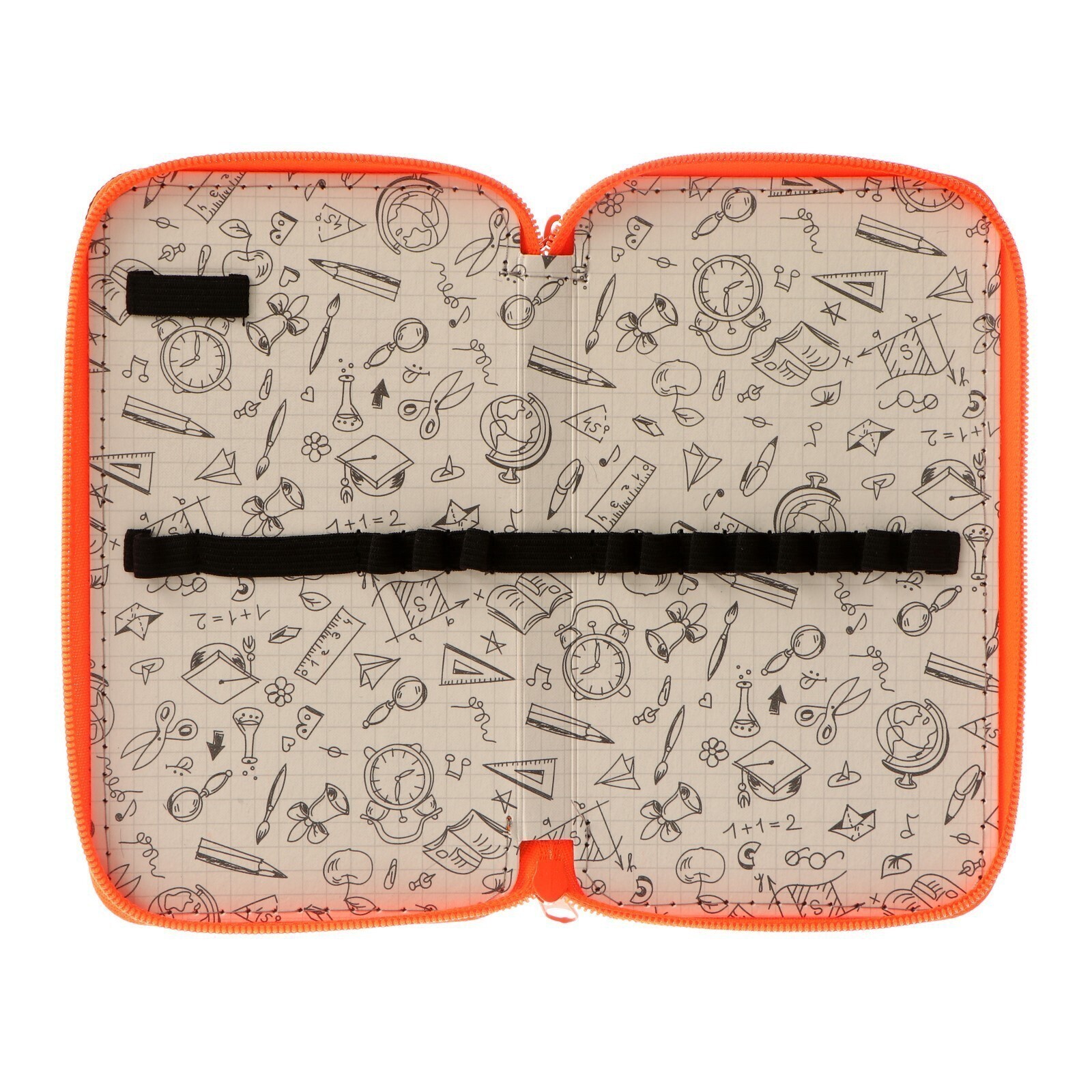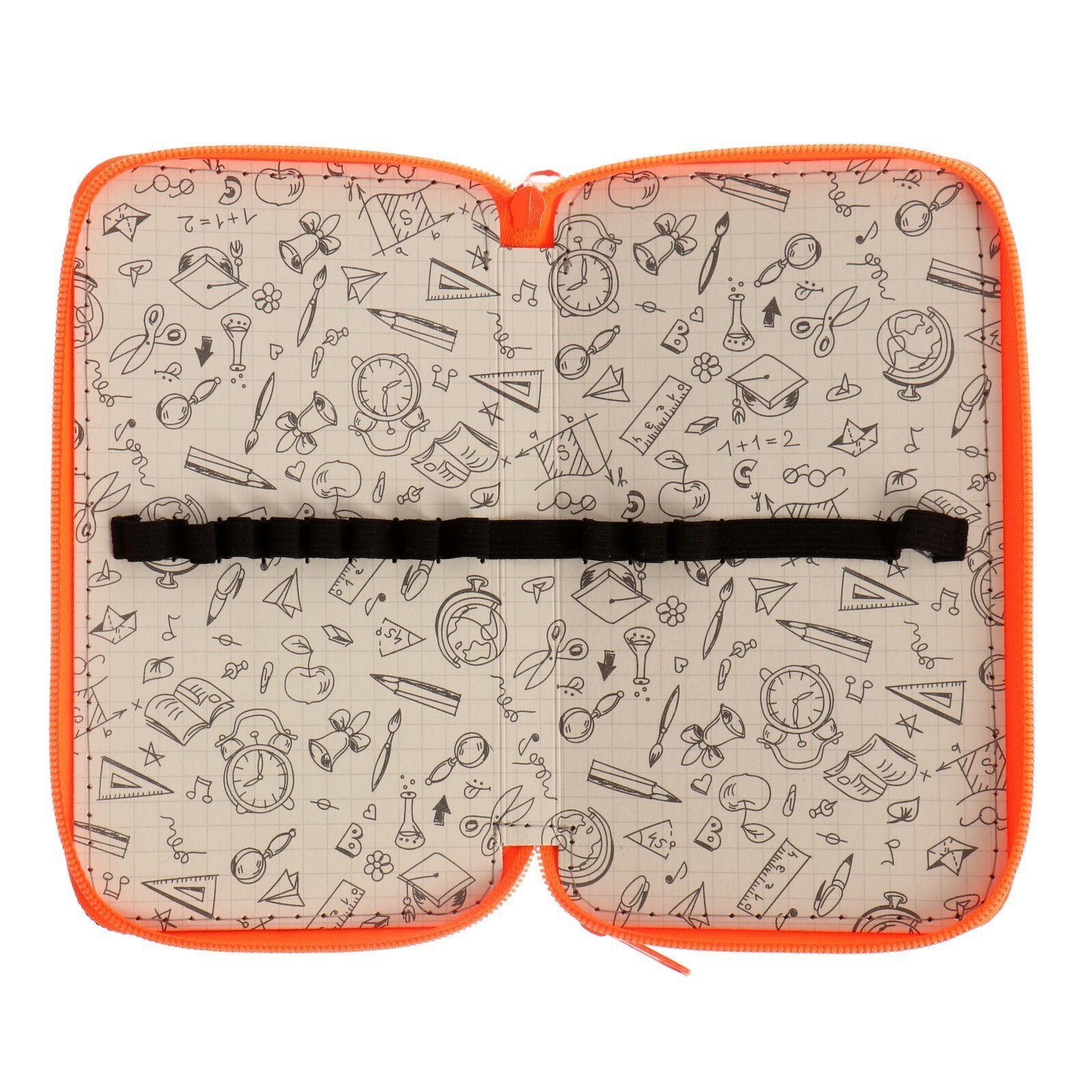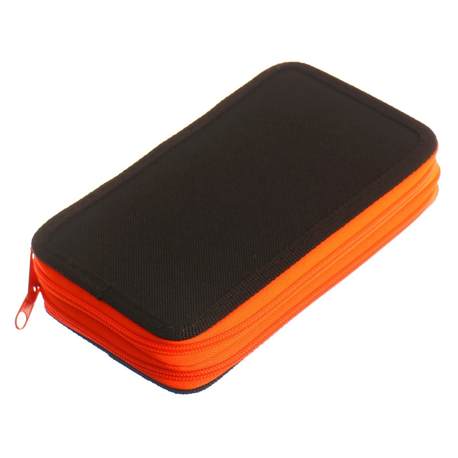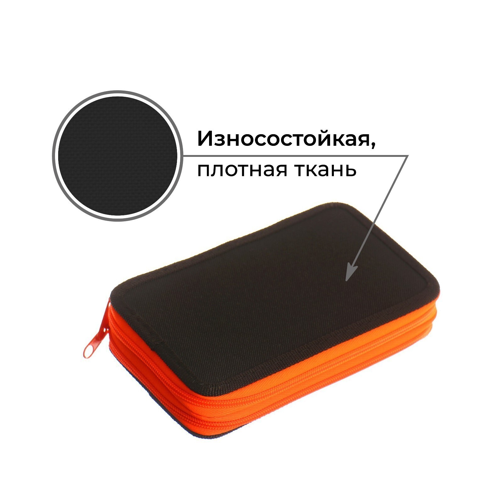 Пенал 2 секции, 110 х 190 мм, тканевый, ПКТ 11-42, цвет чёрный/ярко-оранжевый