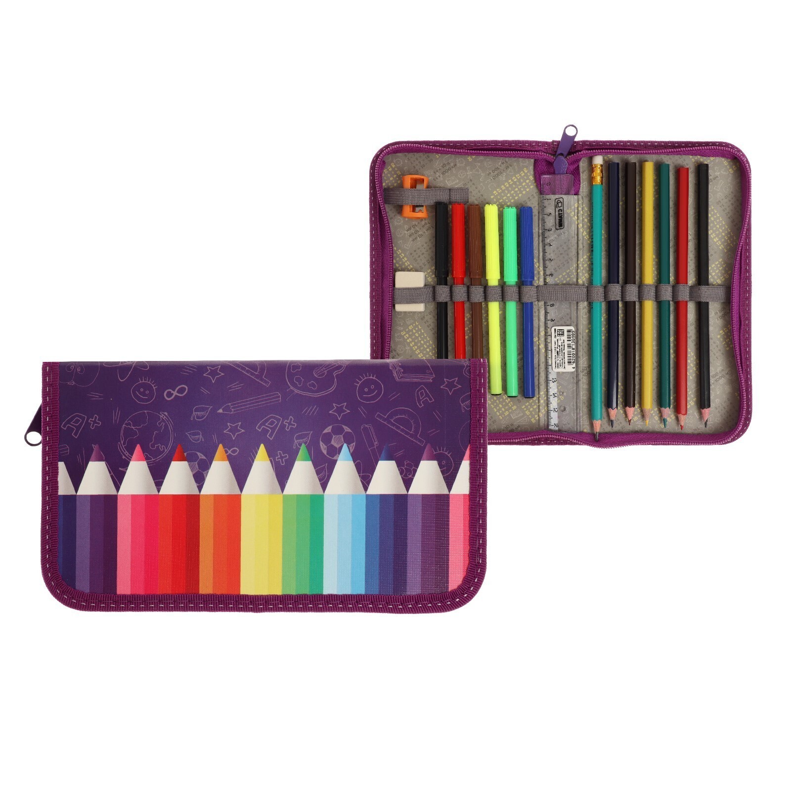 Пенал 1 секция, 115 х 205 х 30 мм, с наполнением, 16 предметов, Calligrata "Карандаши", ламинированный картон