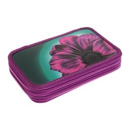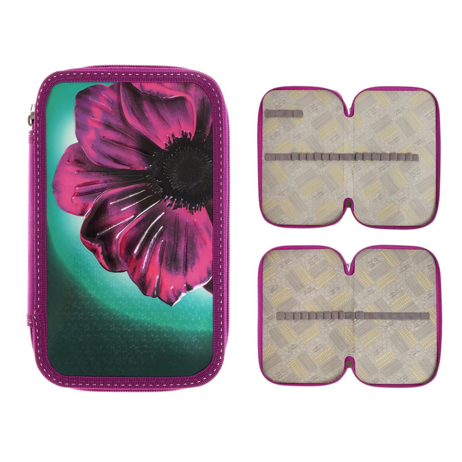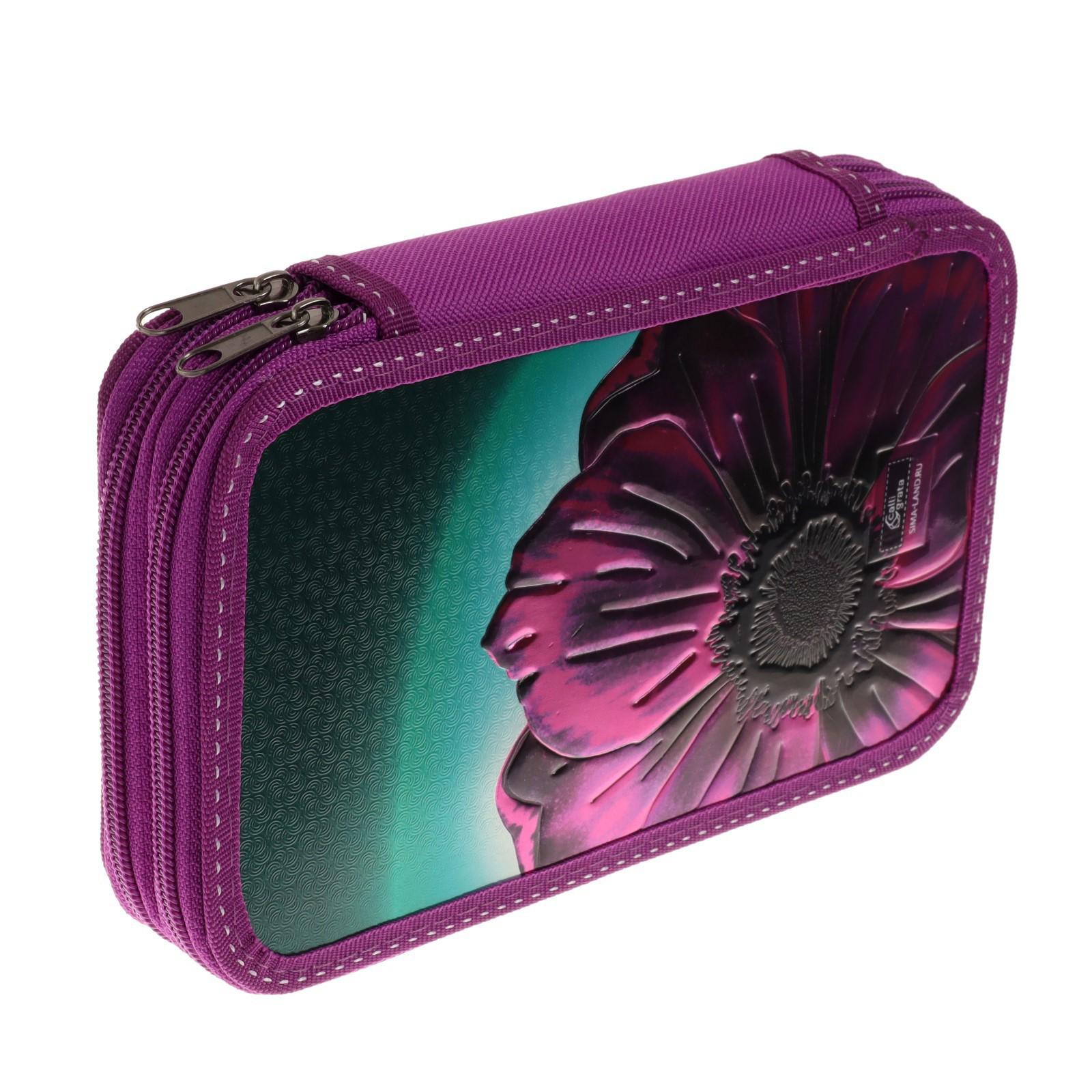 Пенал 2 секции, 125 х 205 мм, 81П26/2 Calligrata "Цветок" (объемный 3D-рисунок с эффектом металлика)