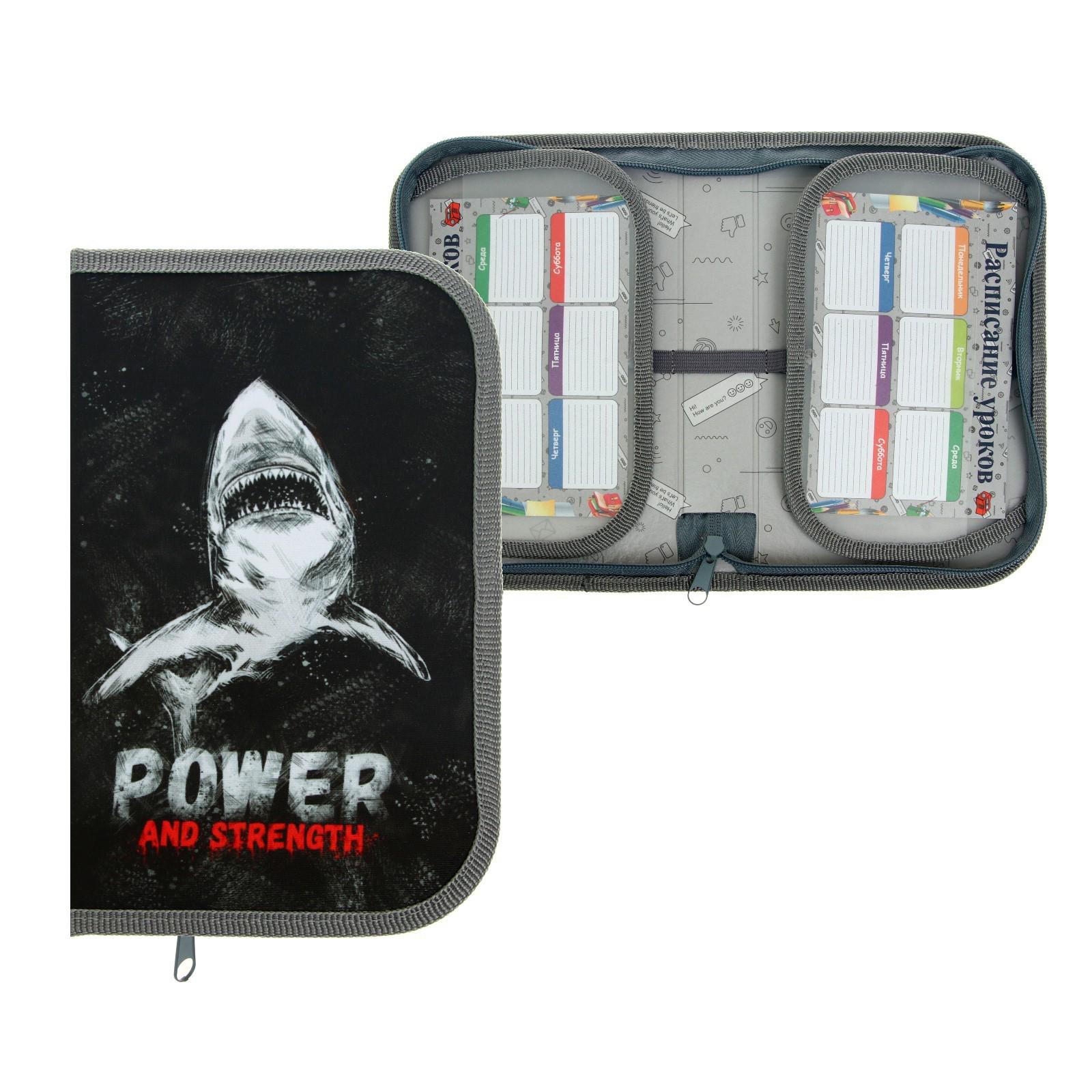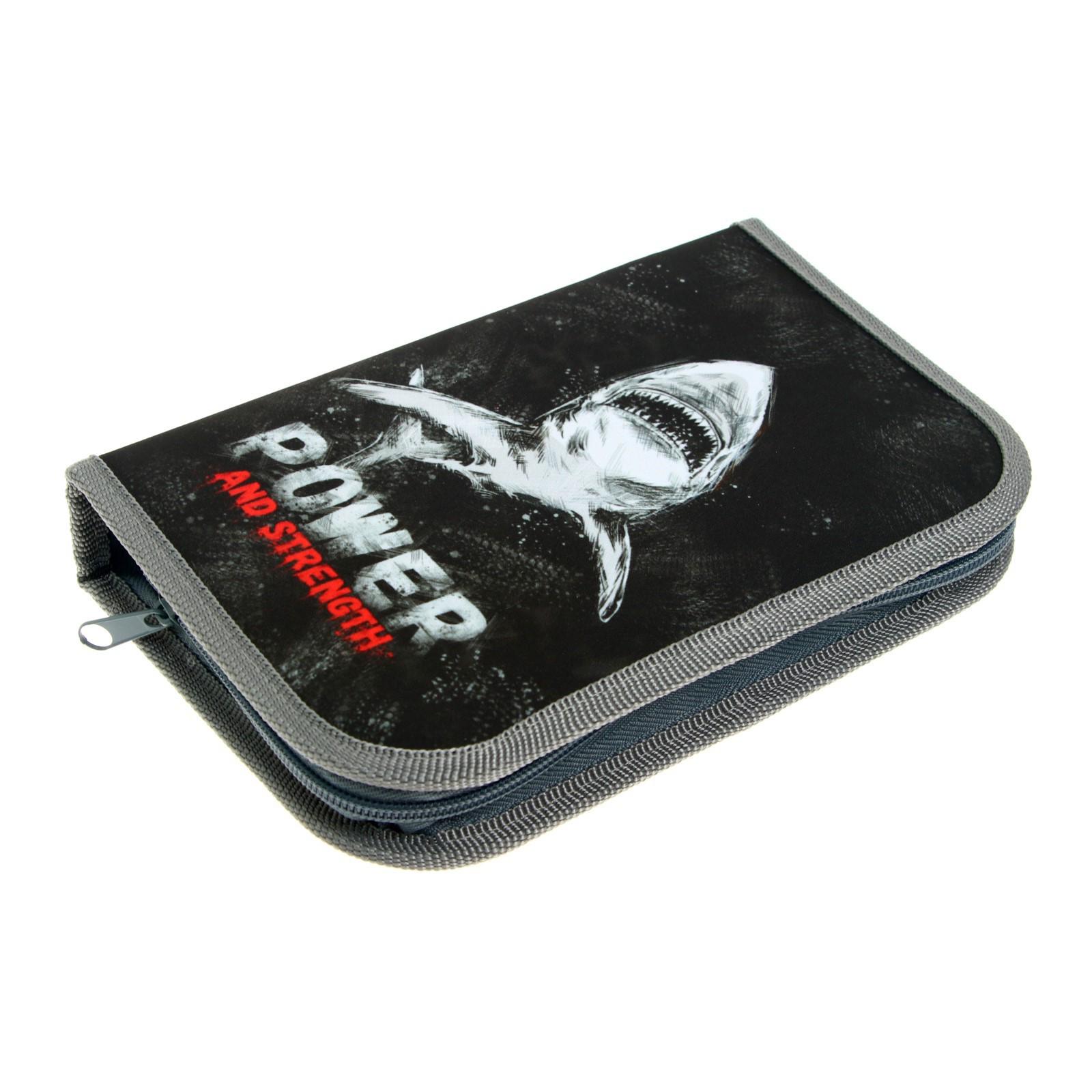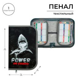 Пенал 1 секция, 130 х 210 мм, откидные 2 планки, тканевый, Calligrata Content "Акула"