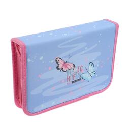 Пенал 1 секция, 2 откидные планки, 140 х 200 мм, тканевый, "Оникс", ПКТ 09-20, "Девочка с шарами"