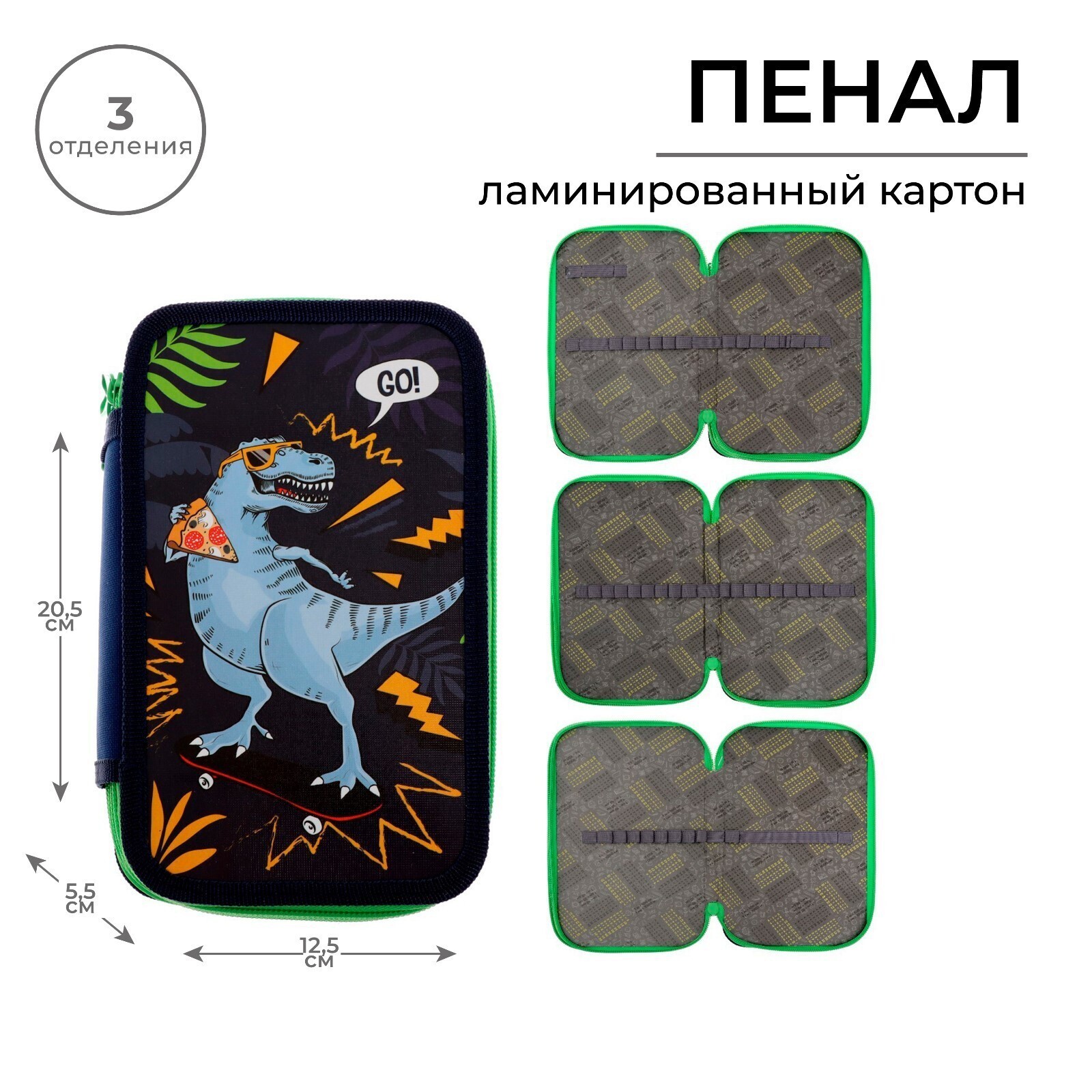 Пенал 3 секции, 125 х 205 мм, Calligrata "Дино", ламинированный картон