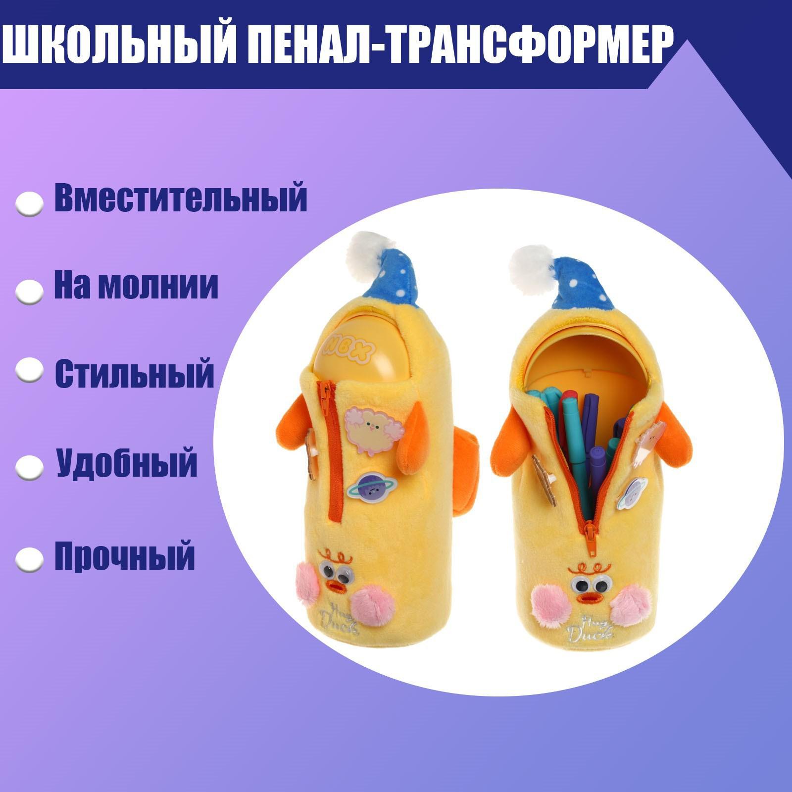 Пенал-тубус школьный на молнии "Утенок", жёлтый