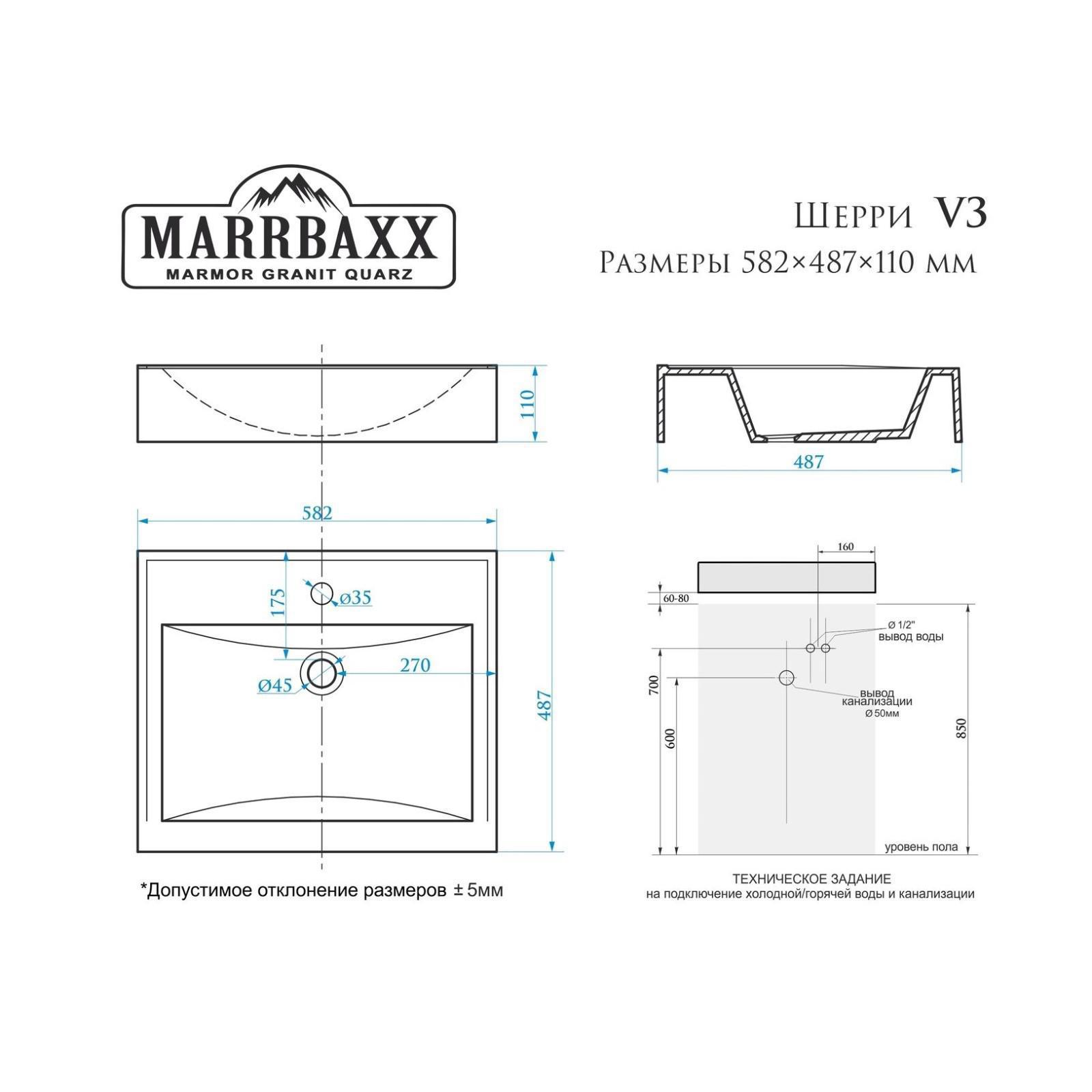 Раковина MARRBAXX Шерри V30D1, на стиральную машину, 582х487х110 мм, сифон, кронштейны
