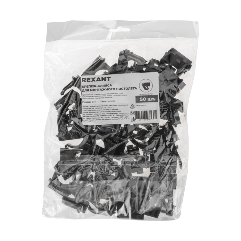 Крепеж-клипса для монтажного пистолета Ø 25 мм, черная (50 шт/уп) REXANT