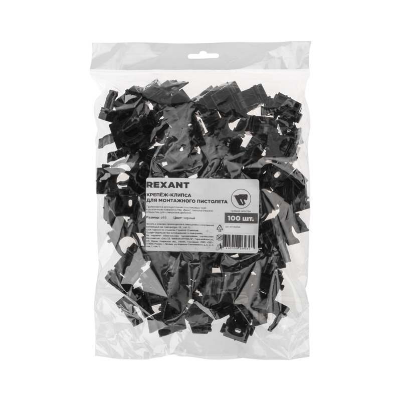 Крепеж-клипса для монтажного пистолета Ø 16 мм, черная (100 шт/уп) REXANT