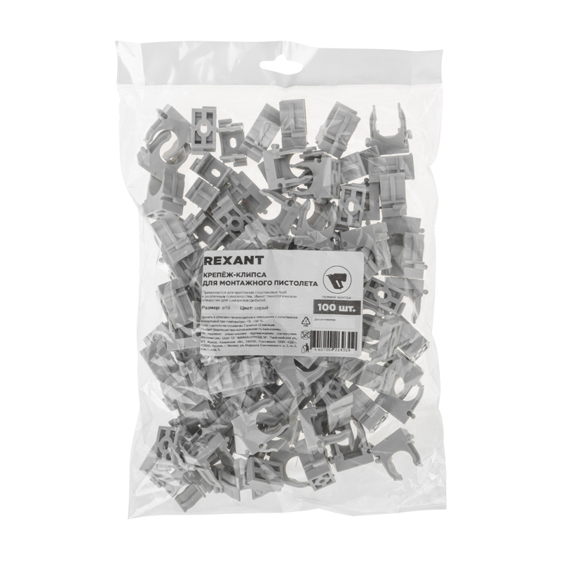 Крепеж-клипса для монтажного пистолета Ø 16 мм, серая (100 шт/уп) REXANT