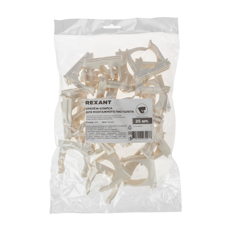 Крепеж-клипса для монтажного пистолета Ø 40 мм, белая (25 шт/уп) REXANT