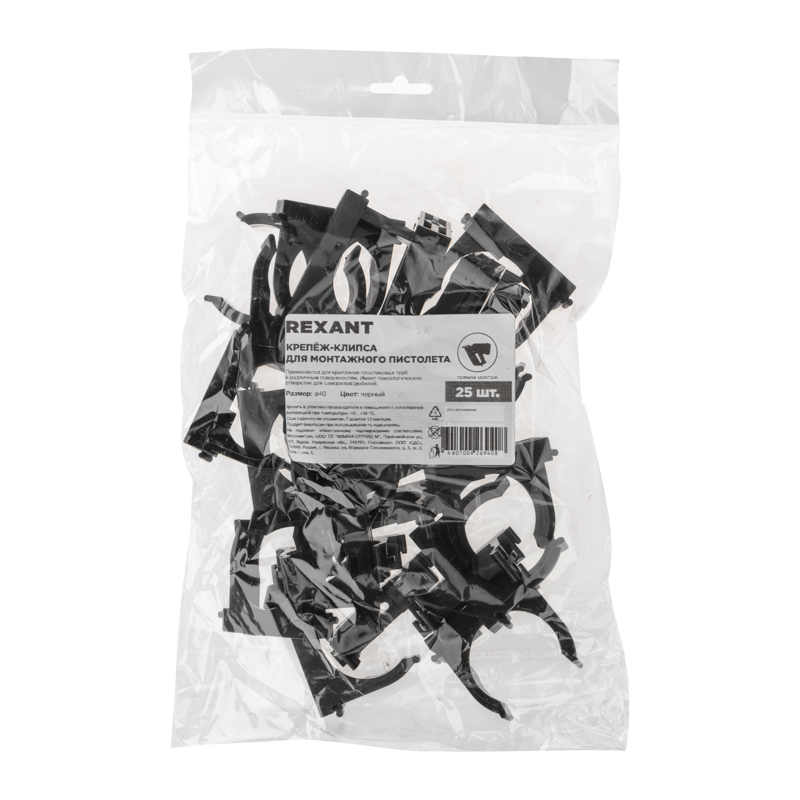 Крепеж-клипса для монтажного пистолета Ø 40 мм, черная (25 шт/уп) REXANT
