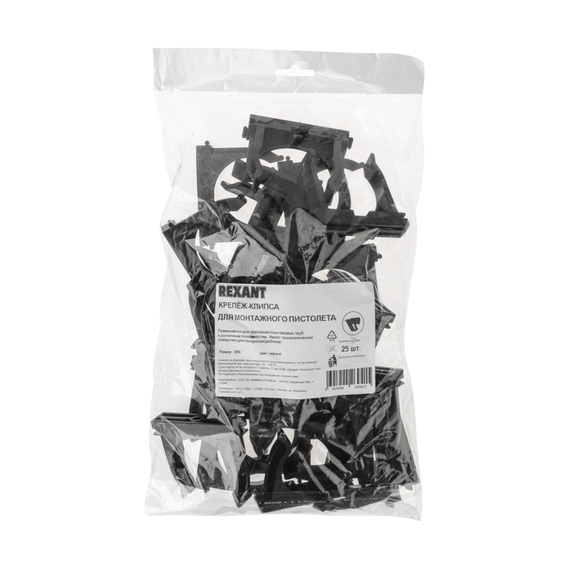 Крепеж-клипса для монтажного пистолета Ø 50 мм, черная (25 шт/уп) REXANT