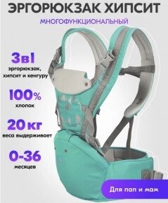 Хипсит - кенгуру Aiebao 3в1, рюкзак - кенгуру слинг для переноски малыша от 0 месяцев Бирюзовый