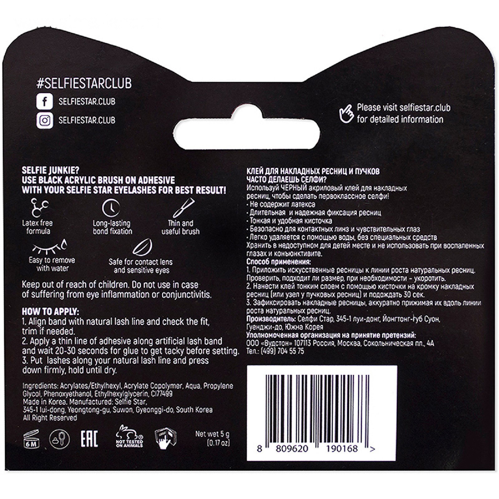 Клей для накладных ресниц с кисточкой Selfie Star, цвет чёрный, 5 г